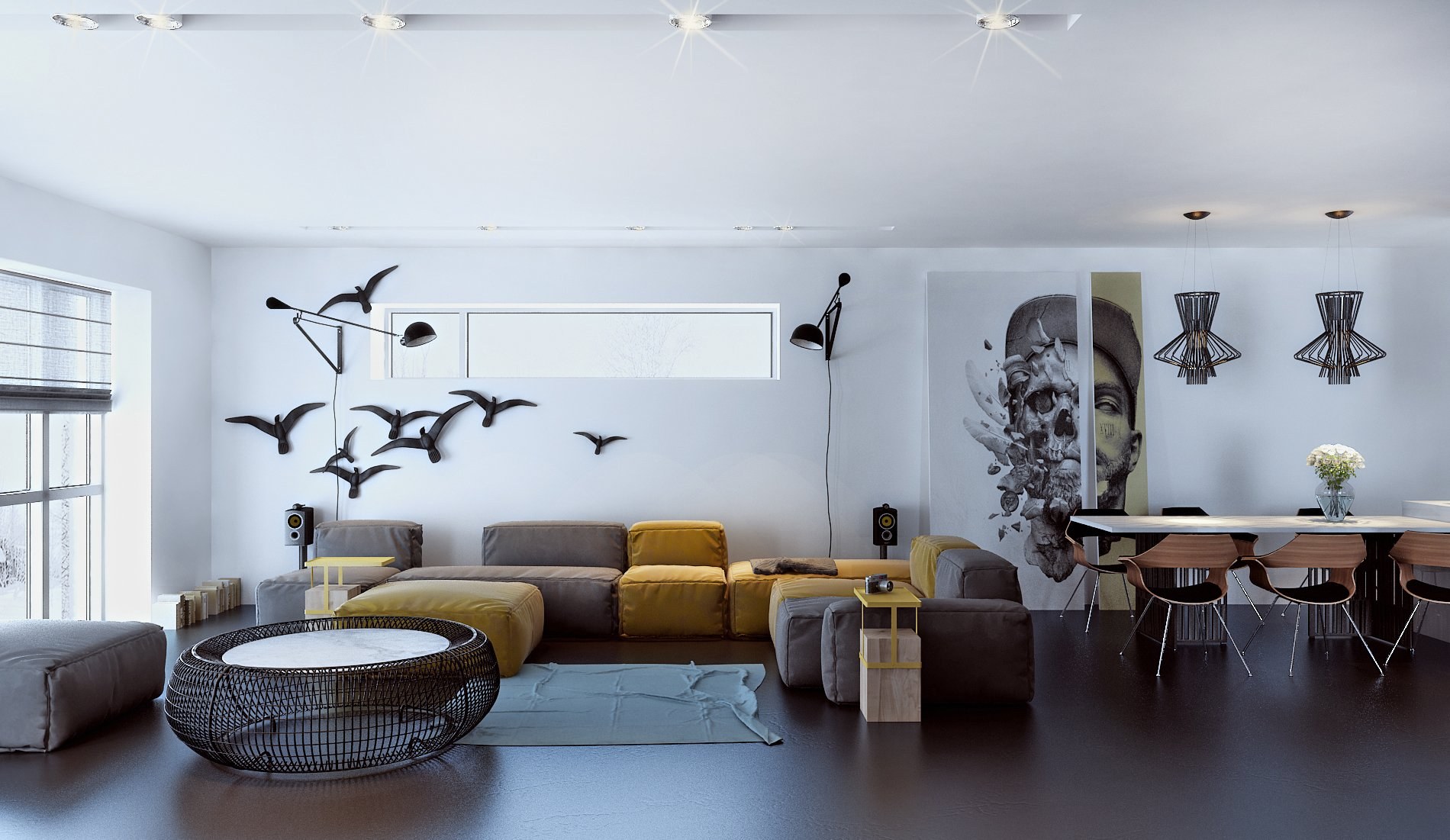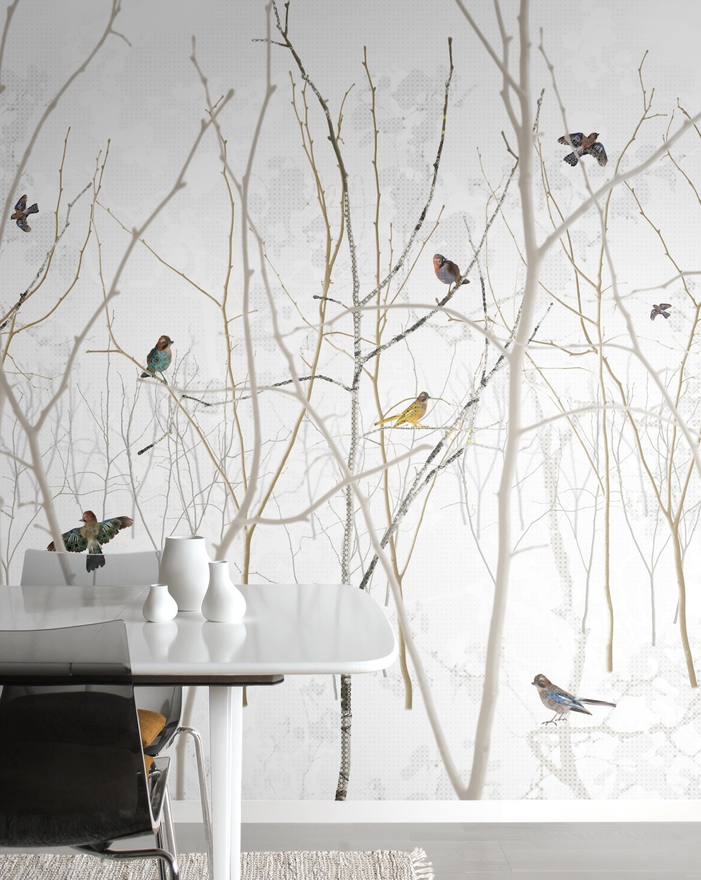 Птицы на стене в интерьере