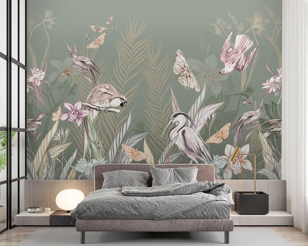 Обои с птицами для стен в интерьере