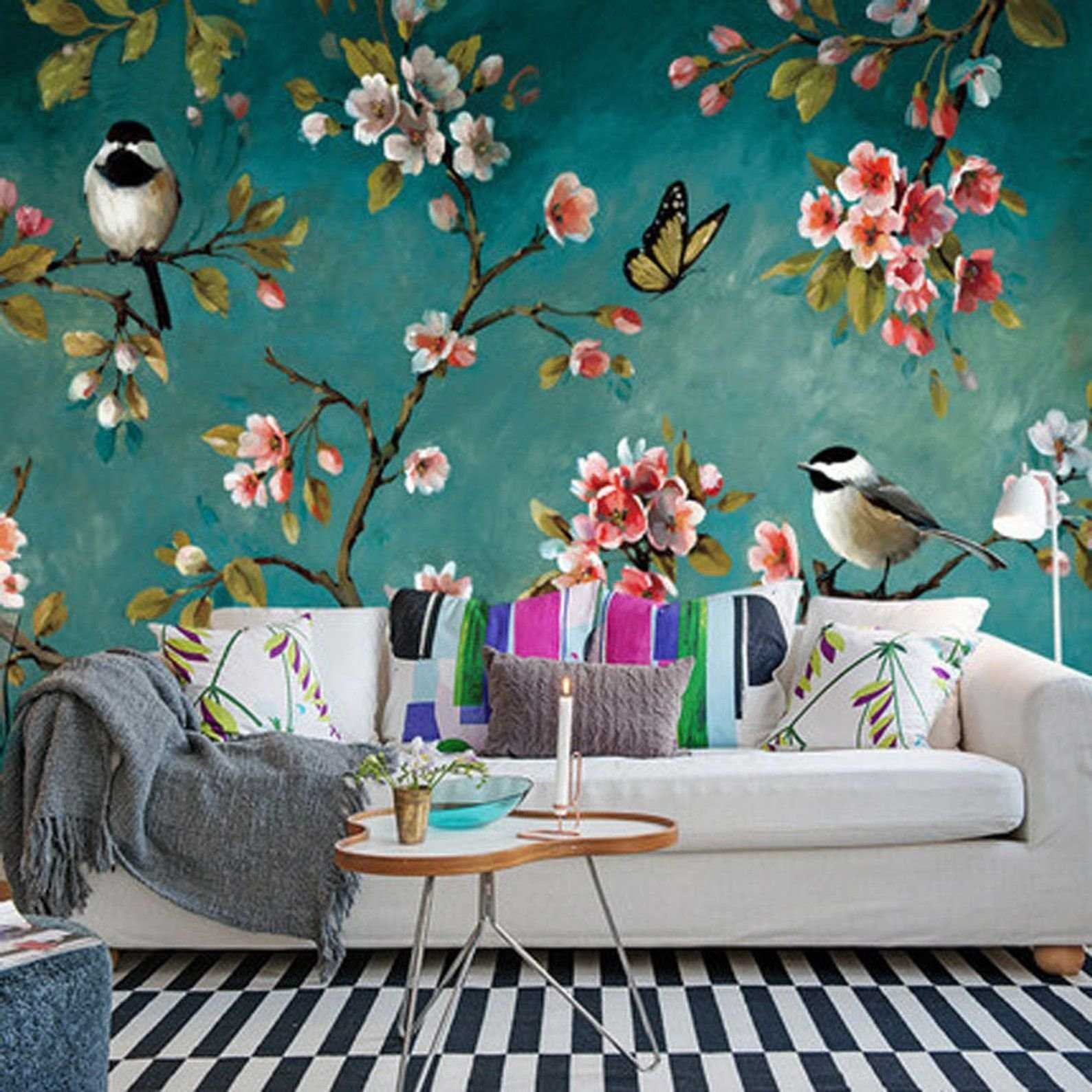 Обои с птичками в интерьере