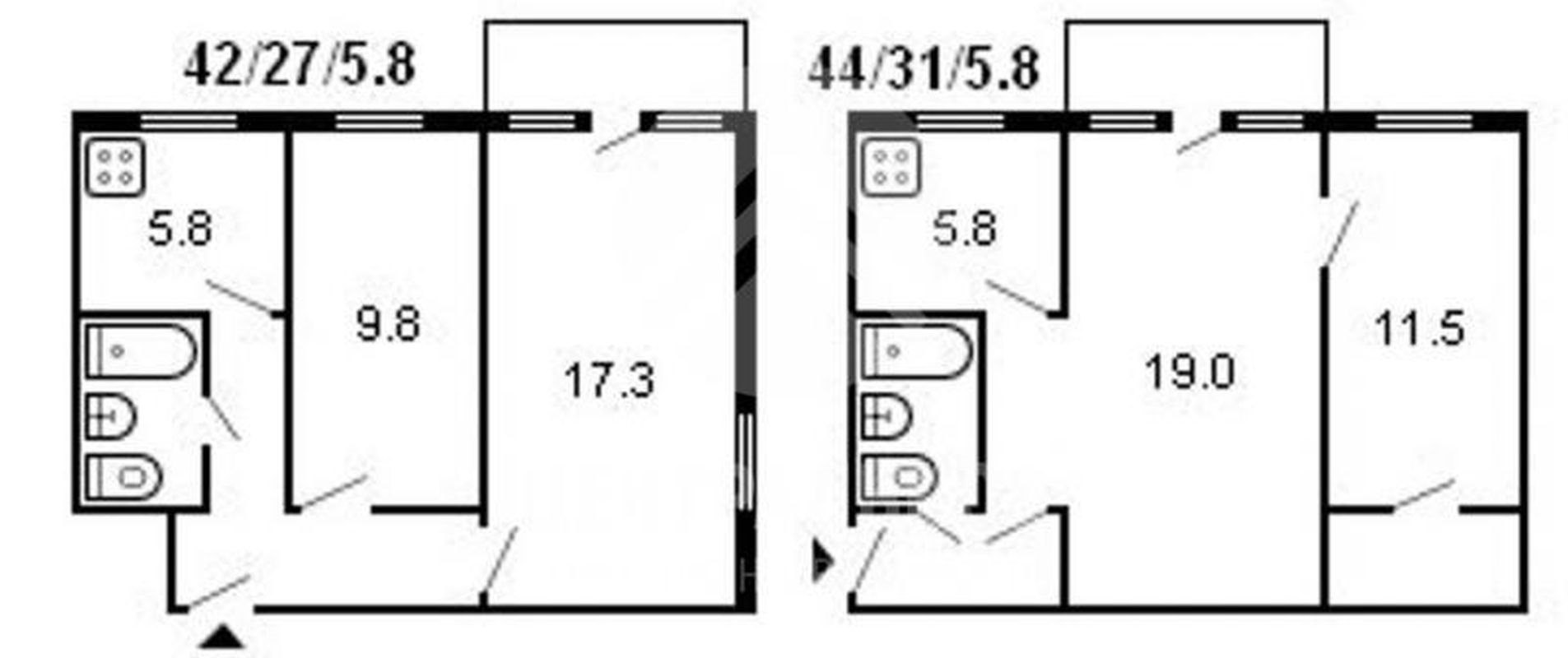 Планировка хрущевки 44 кв.м 2 комнаты