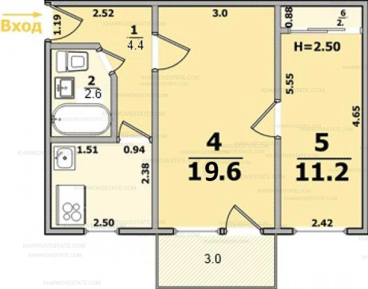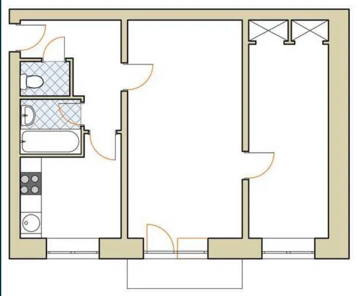 2 Комнатная квартира 44 кв м хрущевка планировка