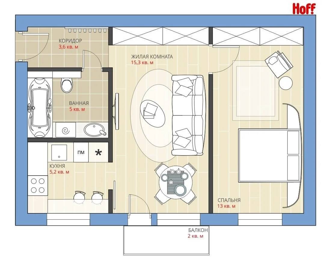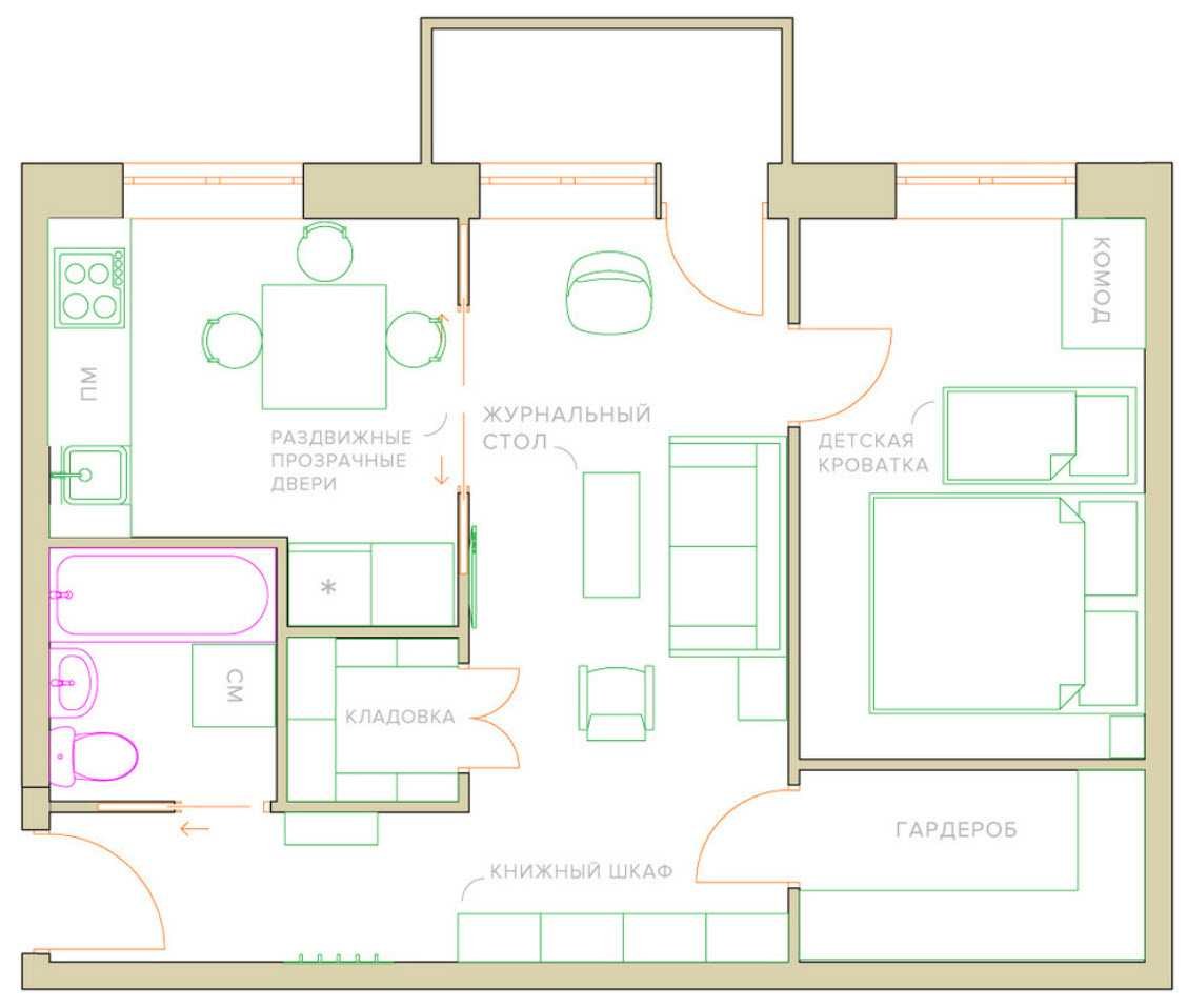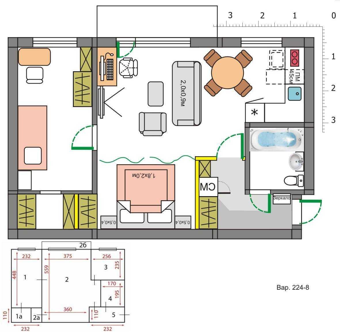 Перепланировка хрущевки 44 м2