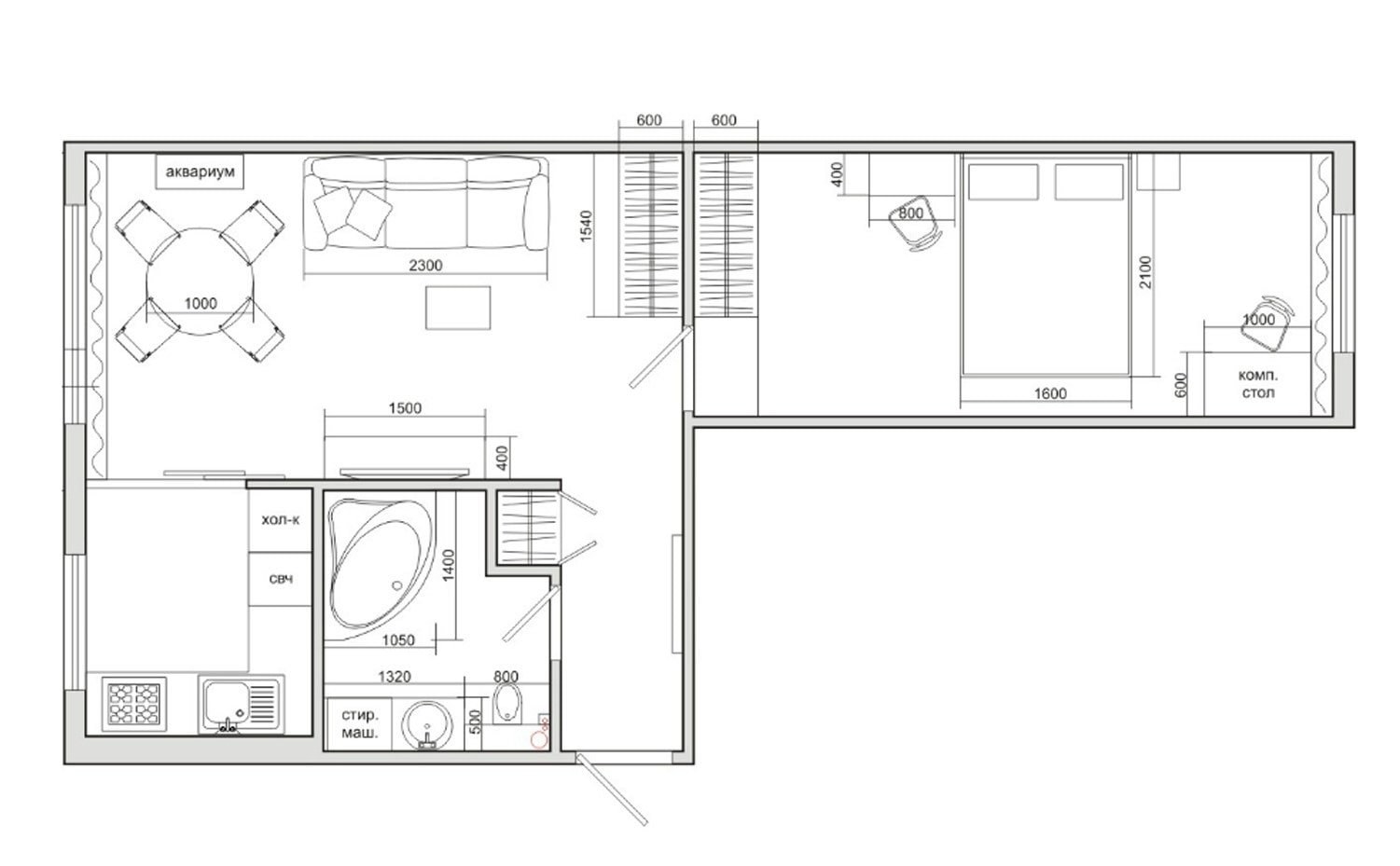 1 Комнатная хрущевка планировка с размерами