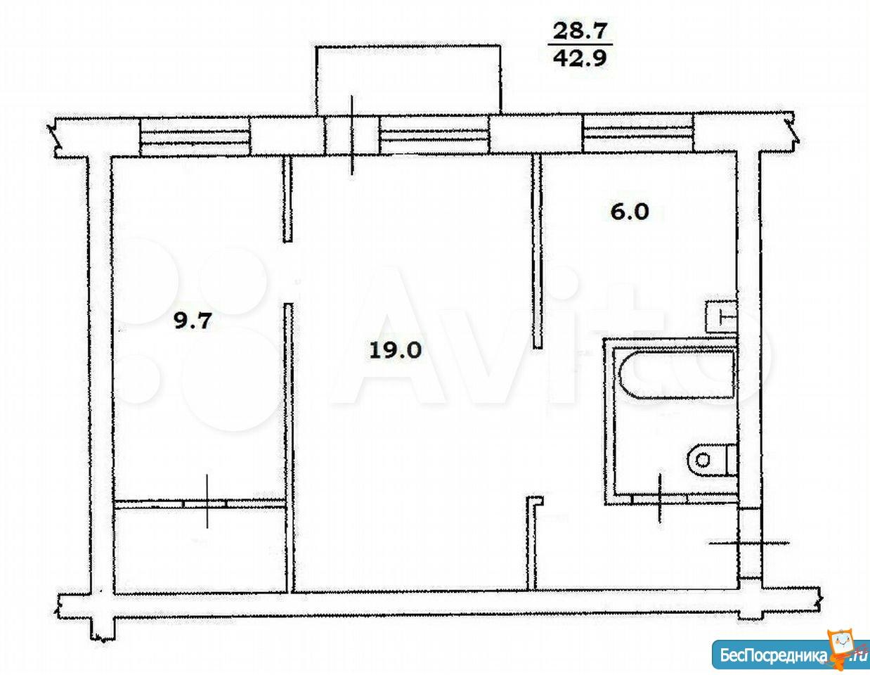 Брежневка 2 комнатная планировка 43 кв
