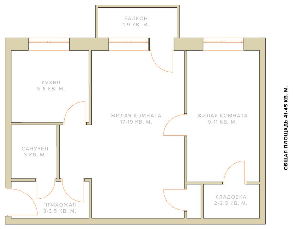 Планировка хрущевки 2 комнаты 43 кв.м