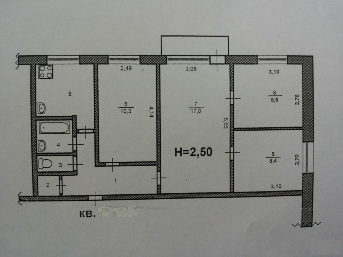 План БТИ хрущевки 2 1-335