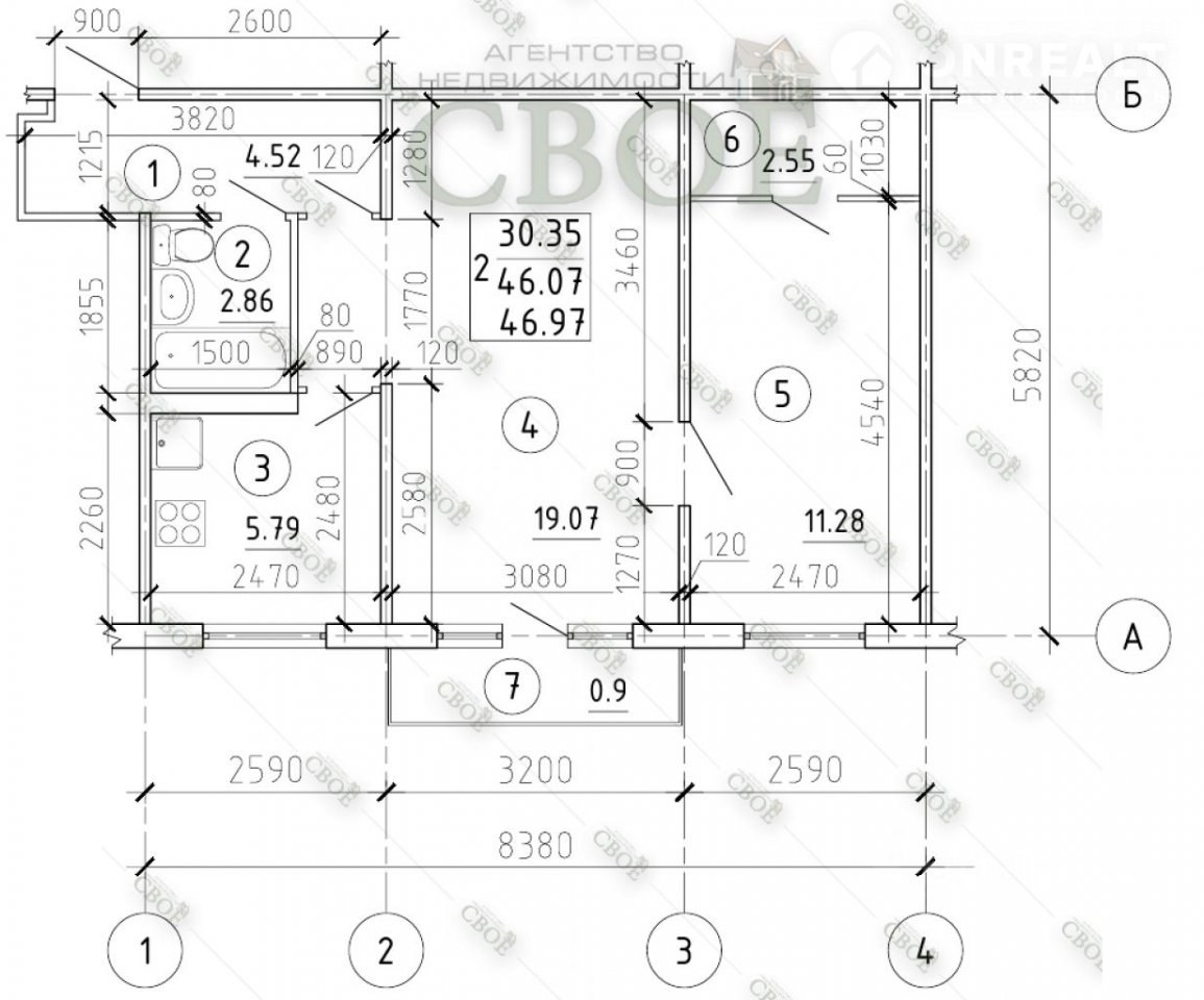 Планировка 2 комнатной квартиры 46 кв.м в хрущевке