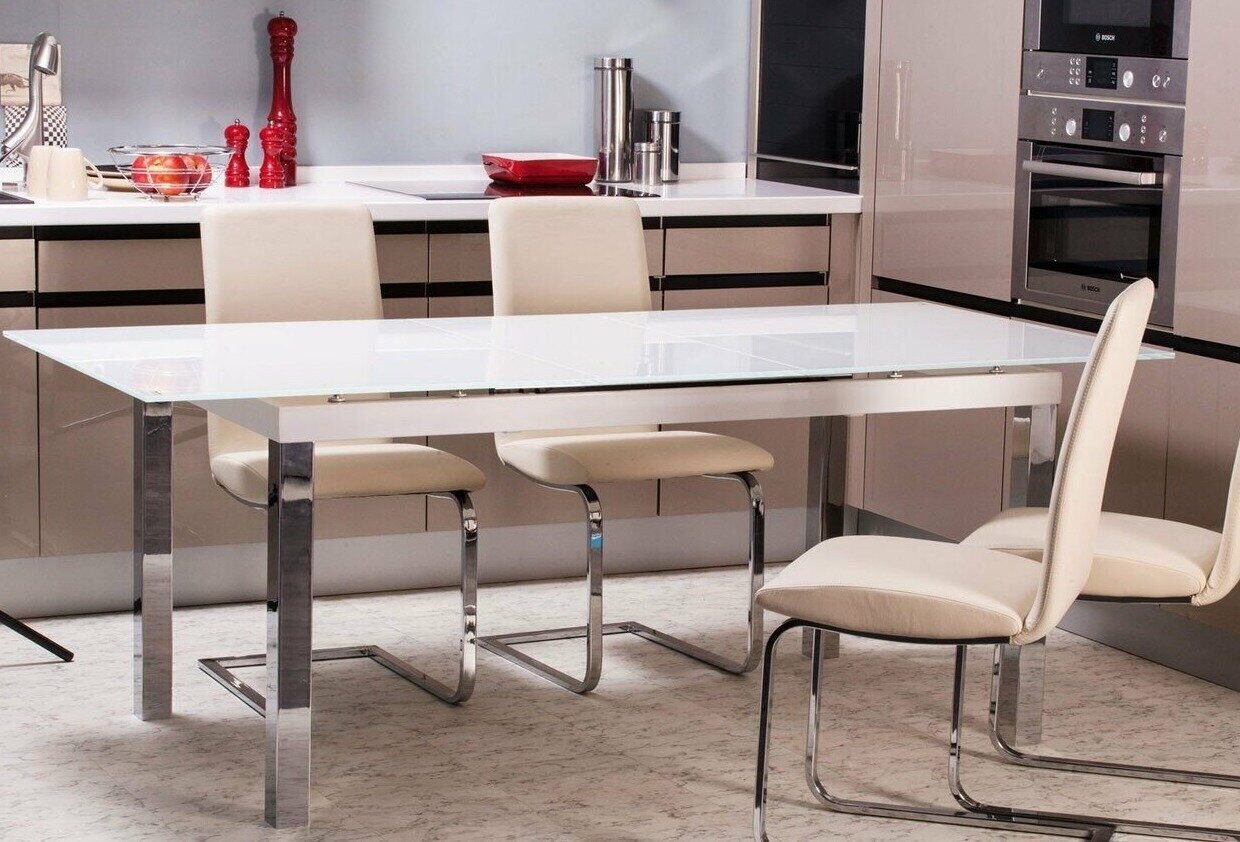 Стол-трансформер в2401 (в2379) белый стеклянный раздвижной