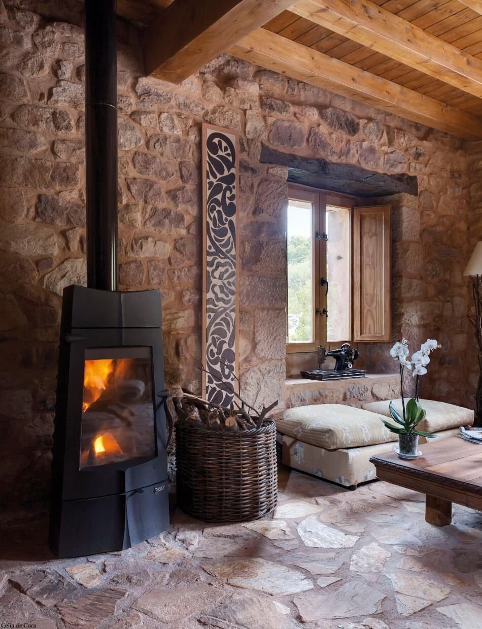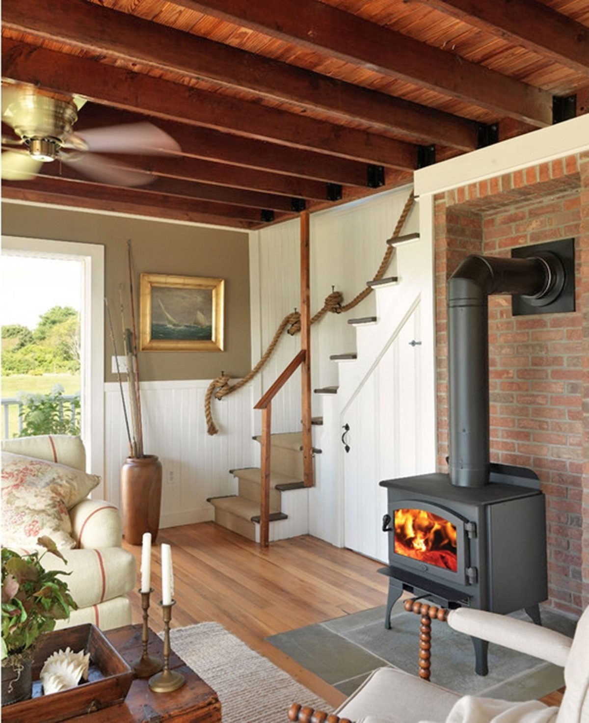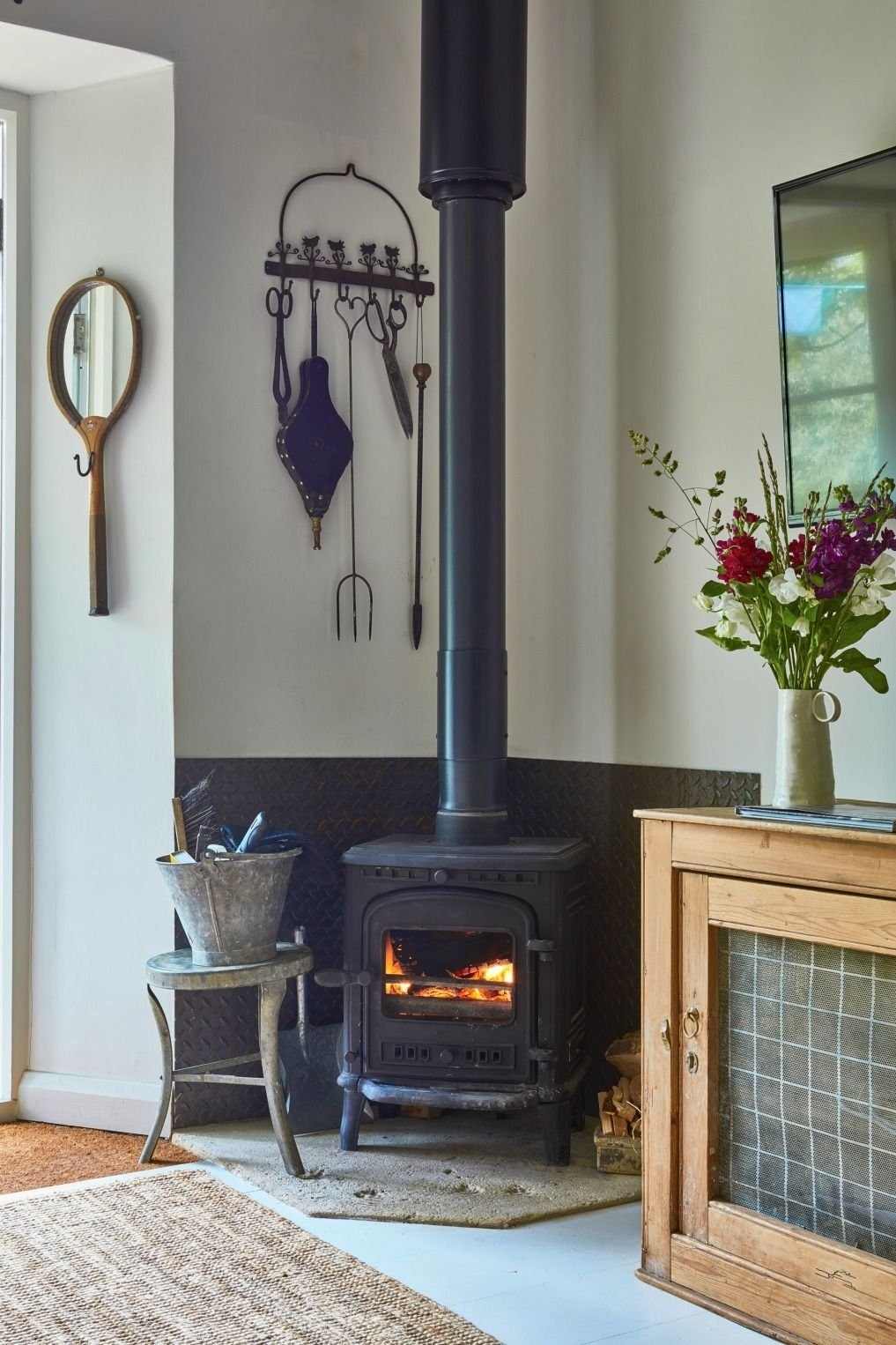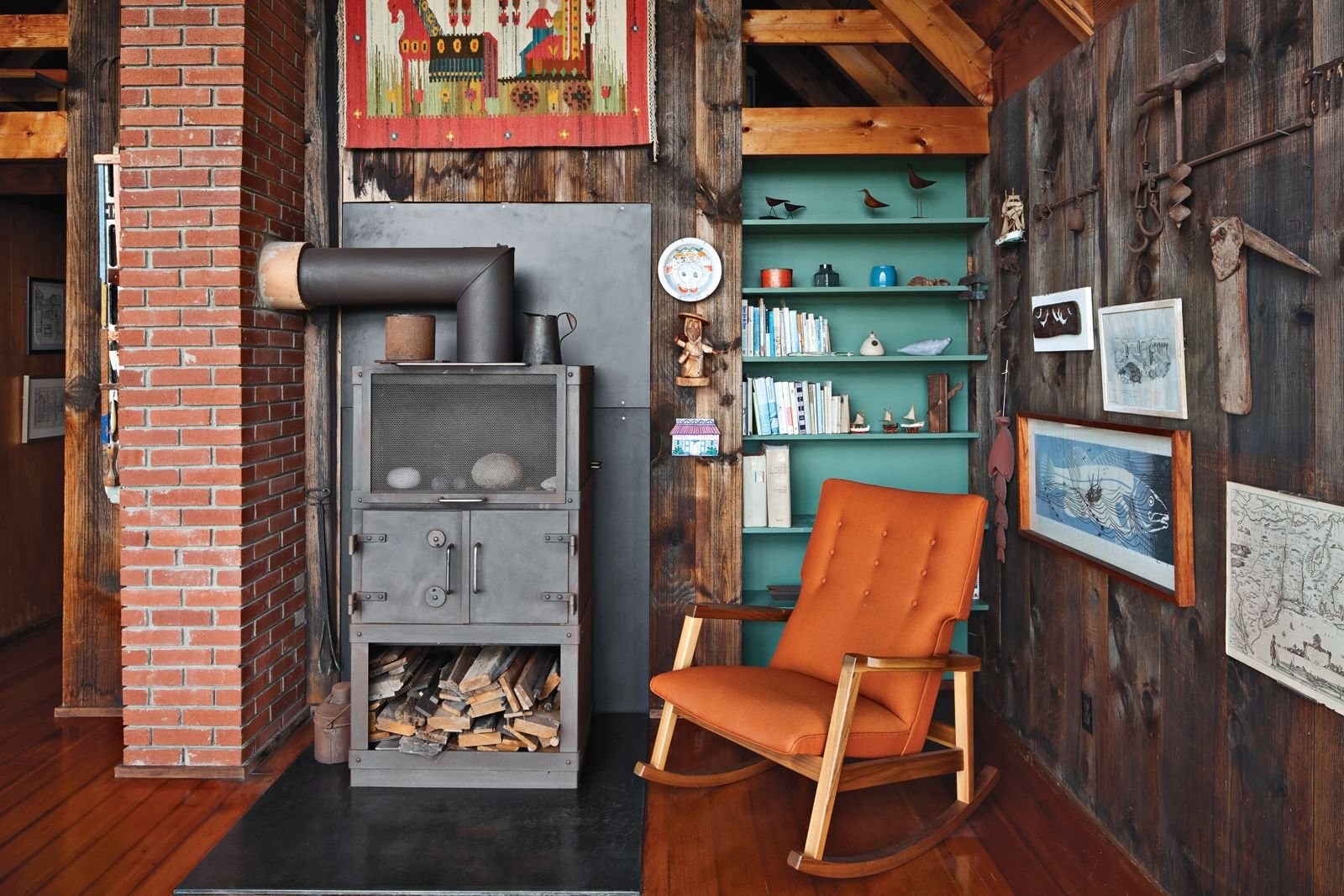 Печь буржуйка в интерьере загородного дома (91 фото)