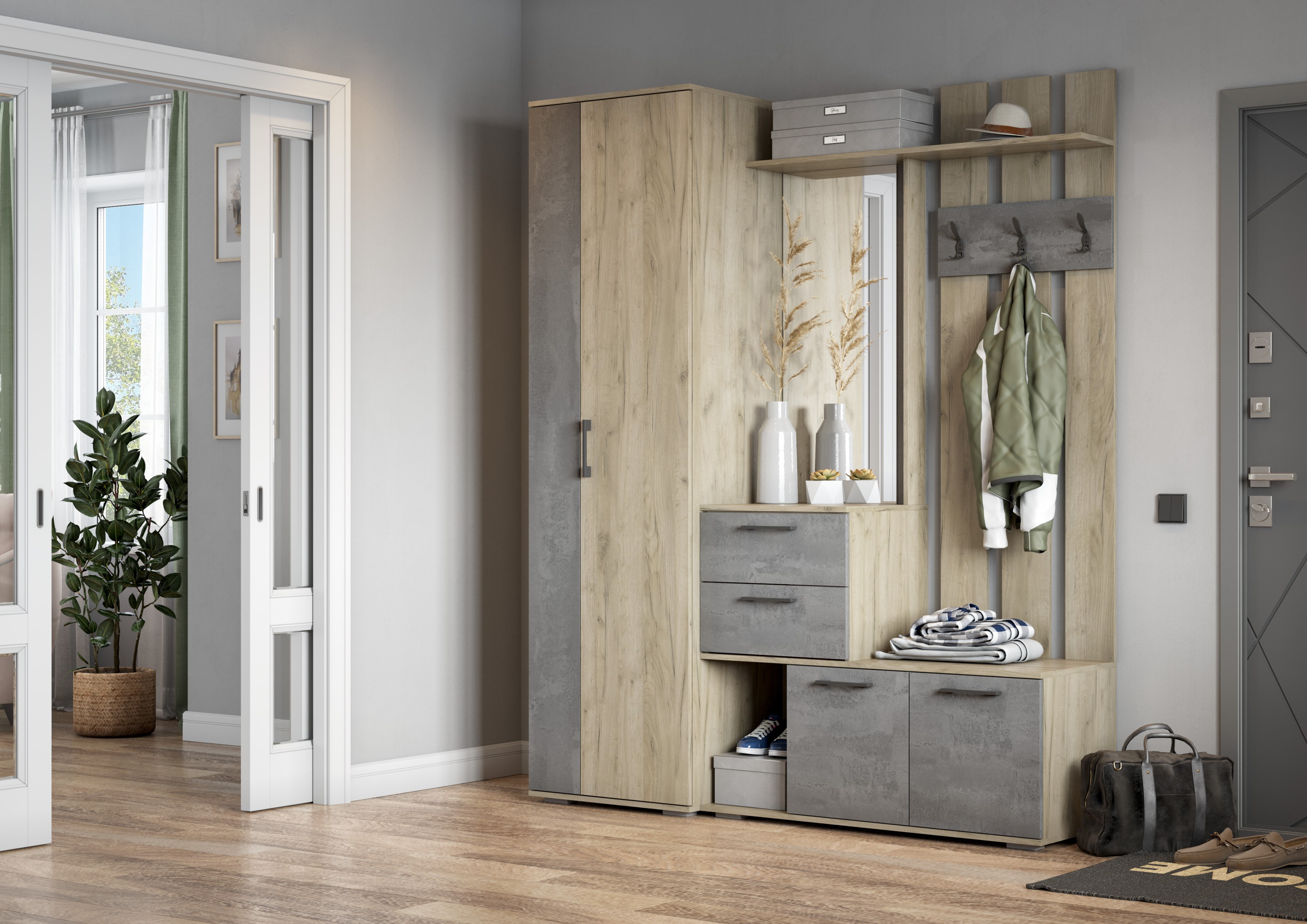 МС для прихожей Бостон ШК-600 (дуб крафт серый/бетонный камень)