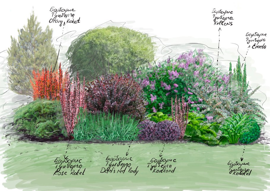 Барбарис тунберга в ландшафтном дизайне с чем сочетается (89 фото)