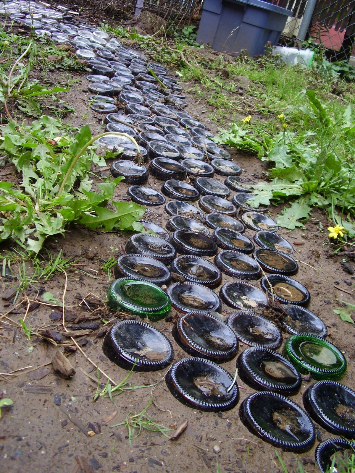 Садовая дорожка из стеклянных бутылок