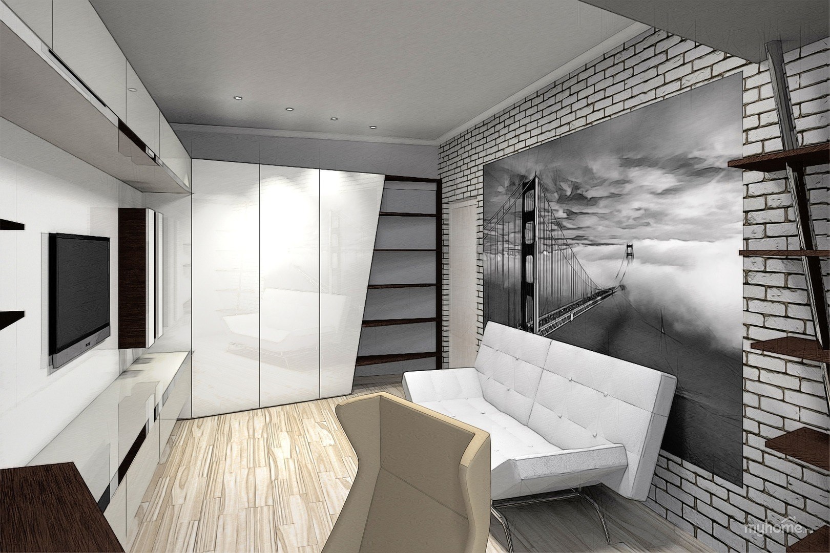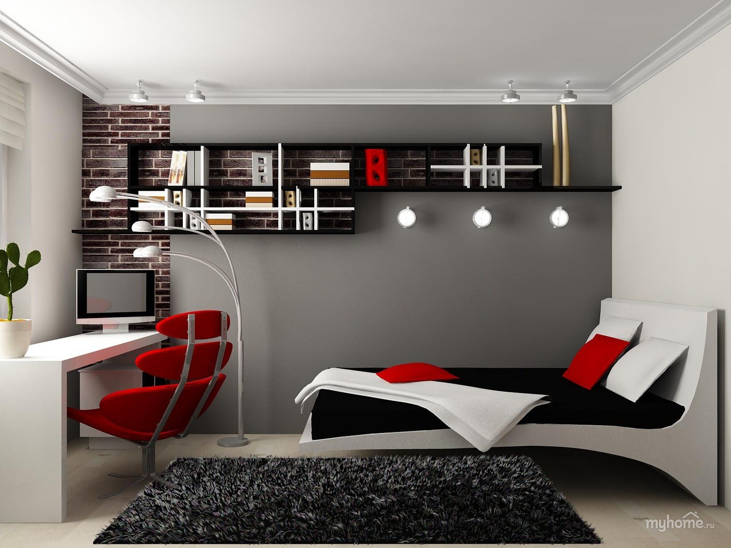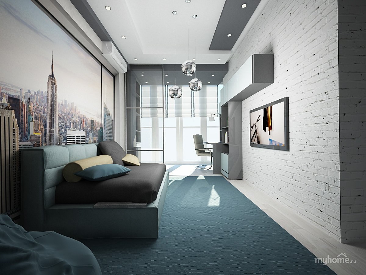 Интерьер комнаты молодого человека в современном стиле