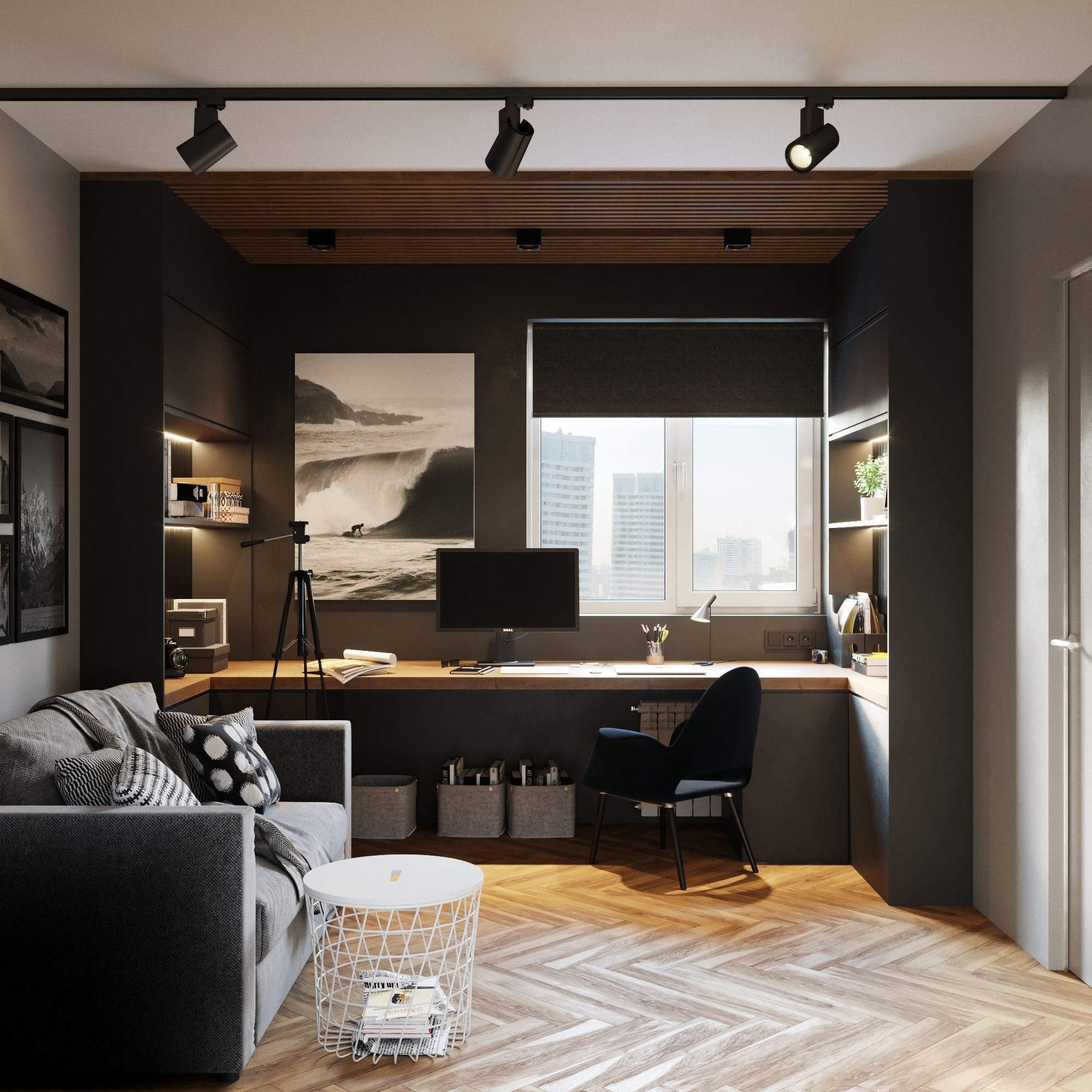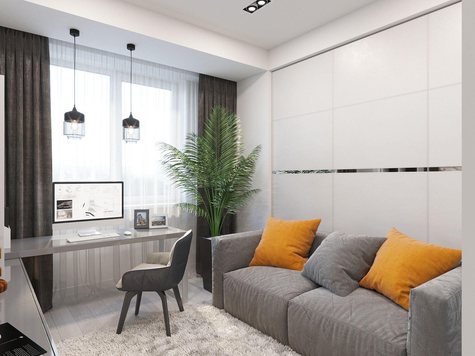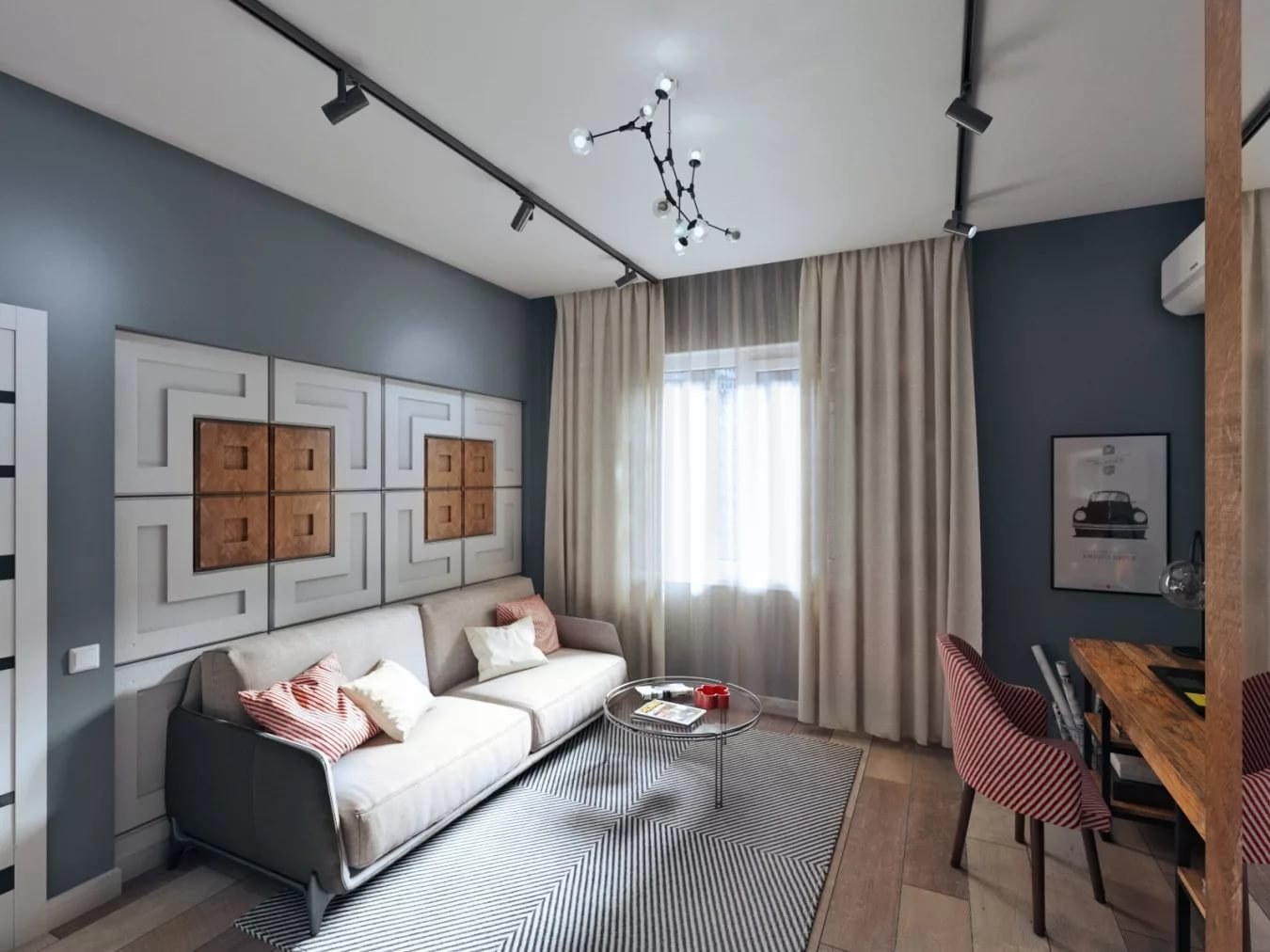 Стильная гостиная с рабочим местом
