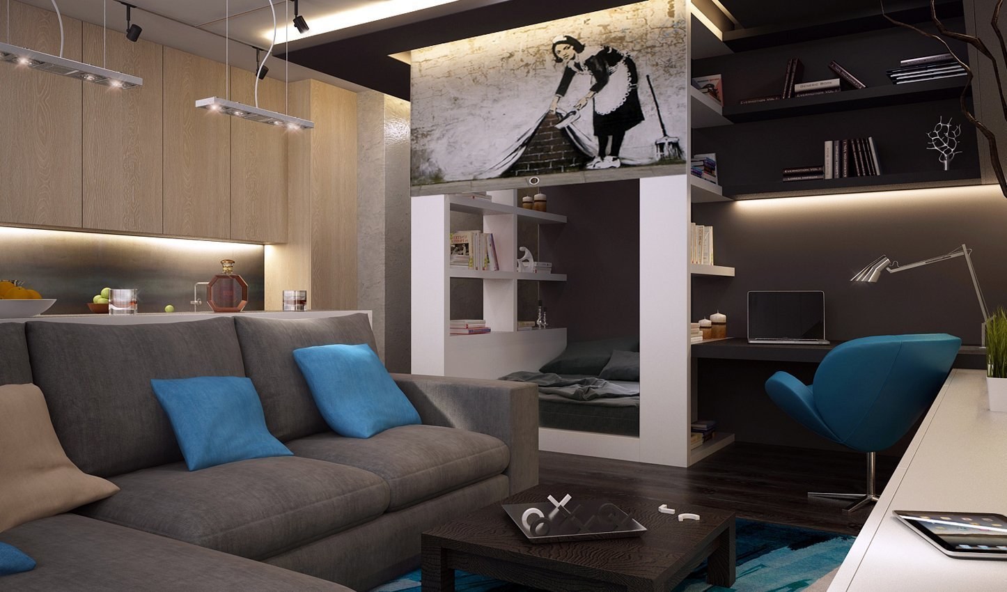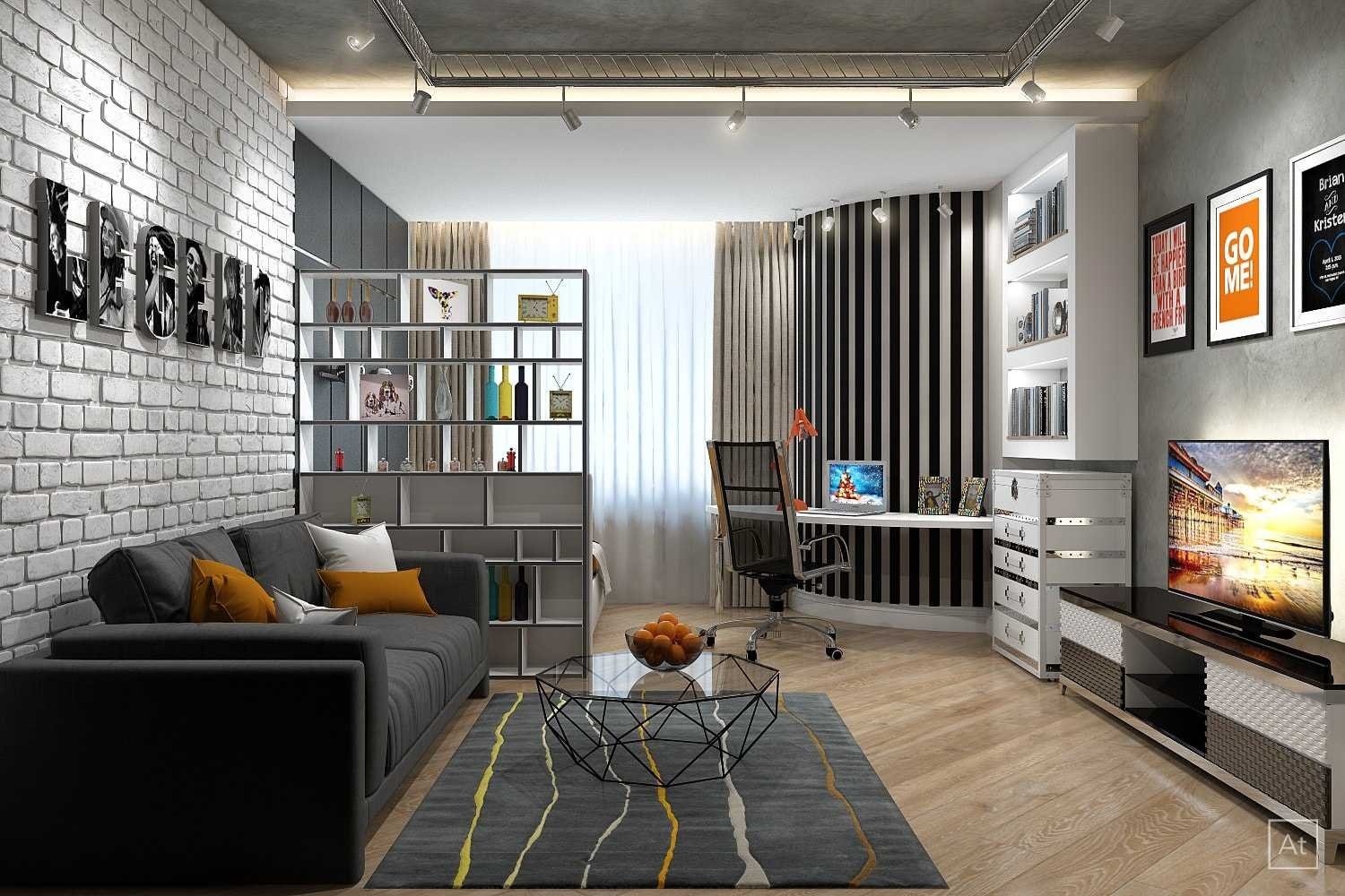 Комната с диваном для молодого человека в современном стиле (94 фото)
