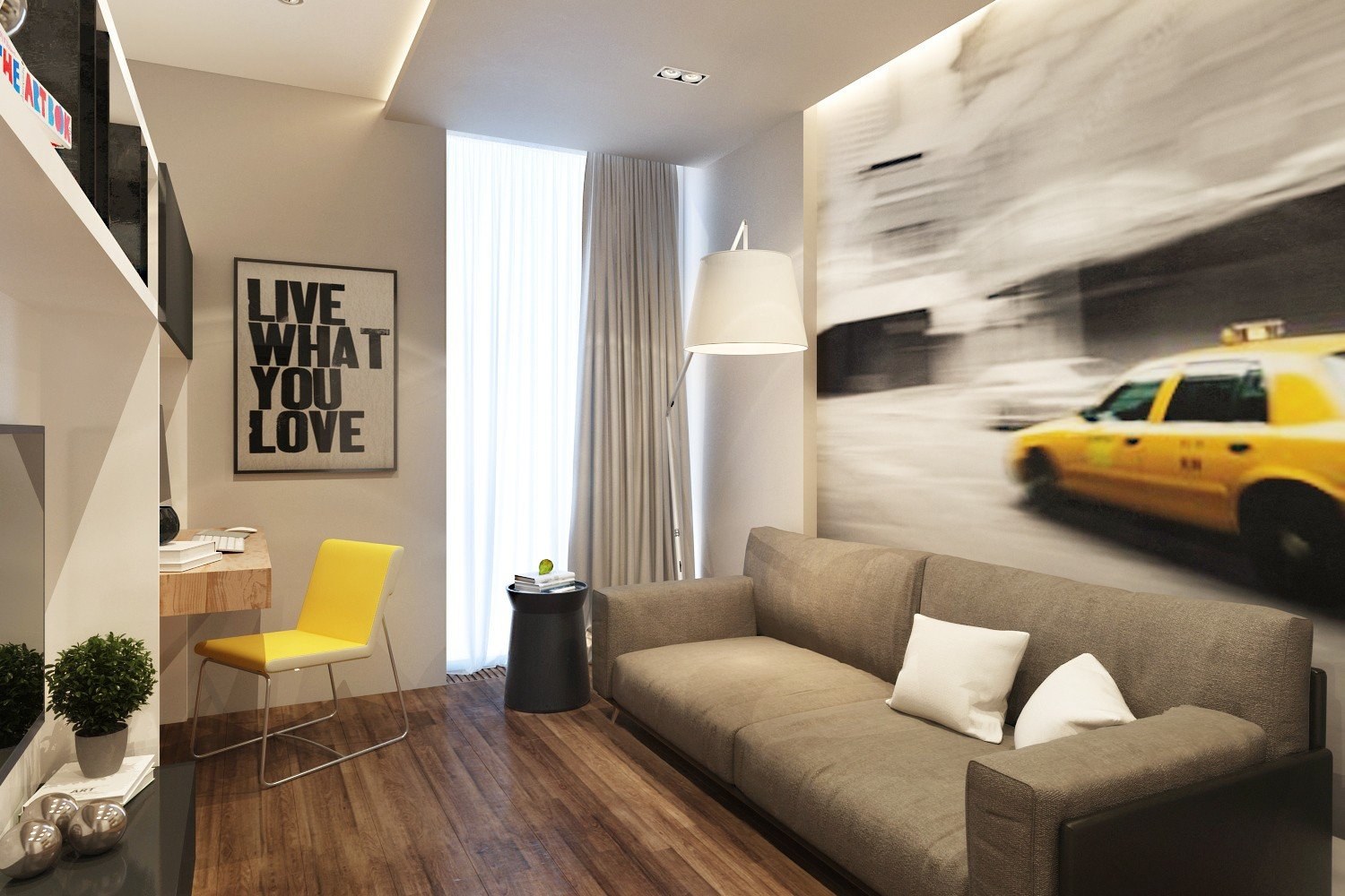Гостиная спальня с рабочим местом