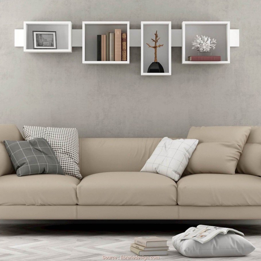 Стеллаж над диваном в гостиной