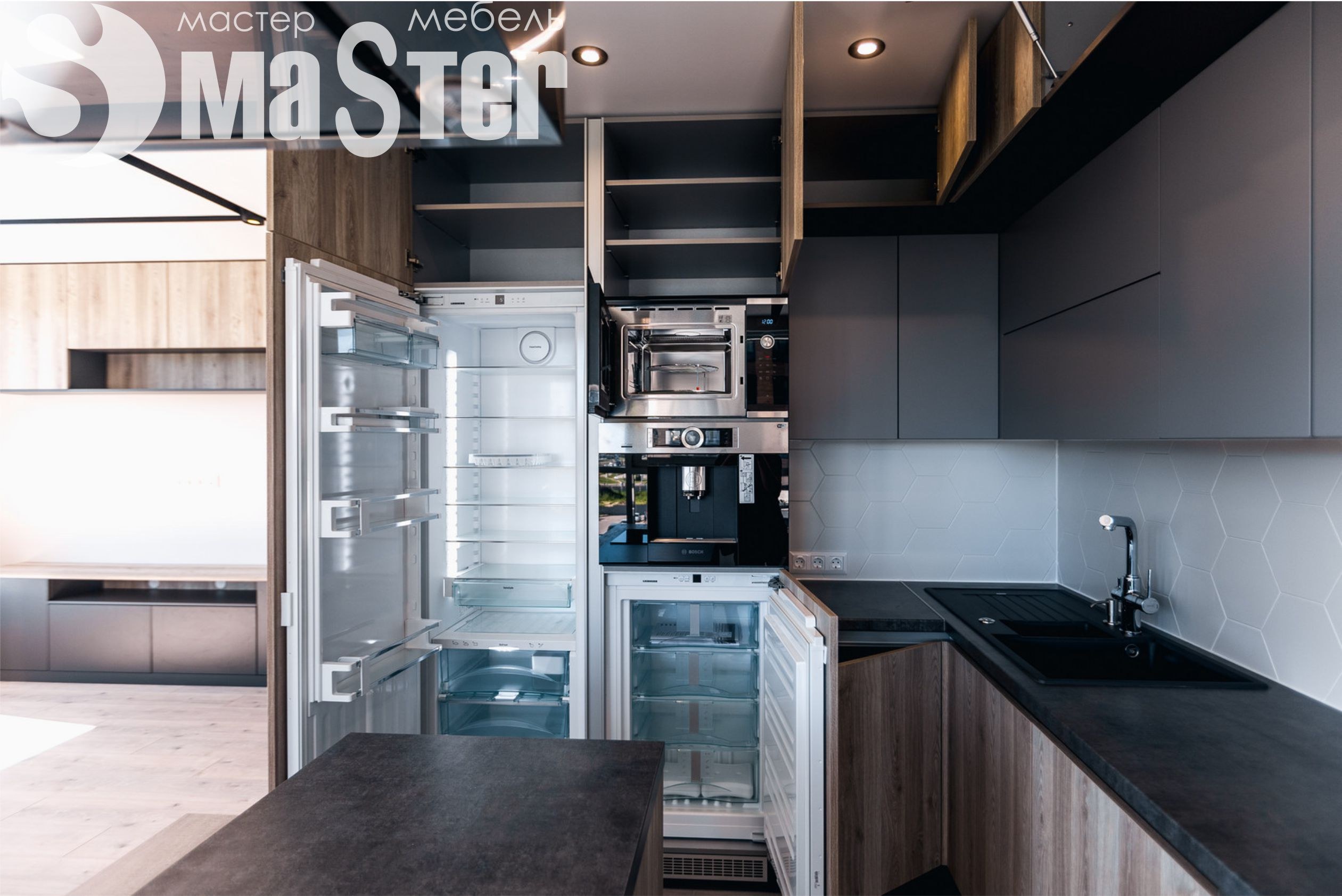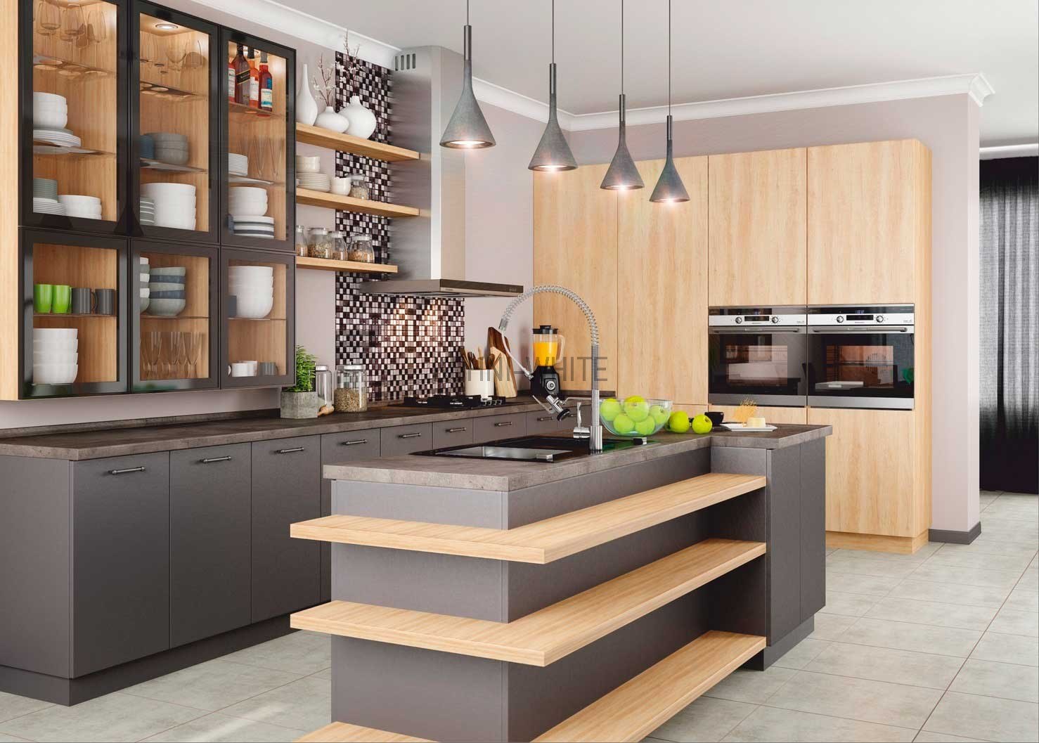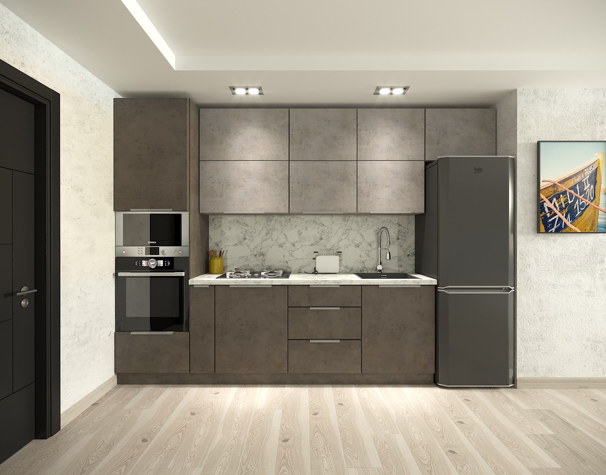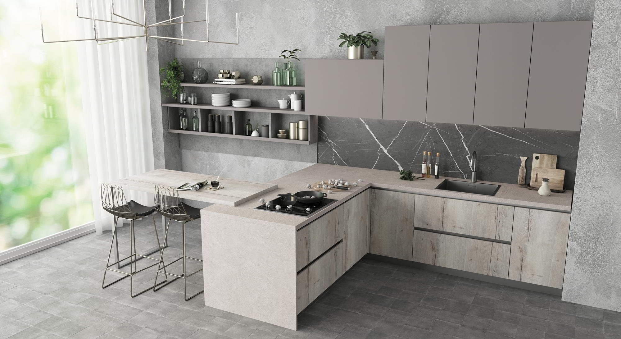 Кухонный гарнитур лофт Регина песочный/Диамант серый, дуб дикий 2,4 м