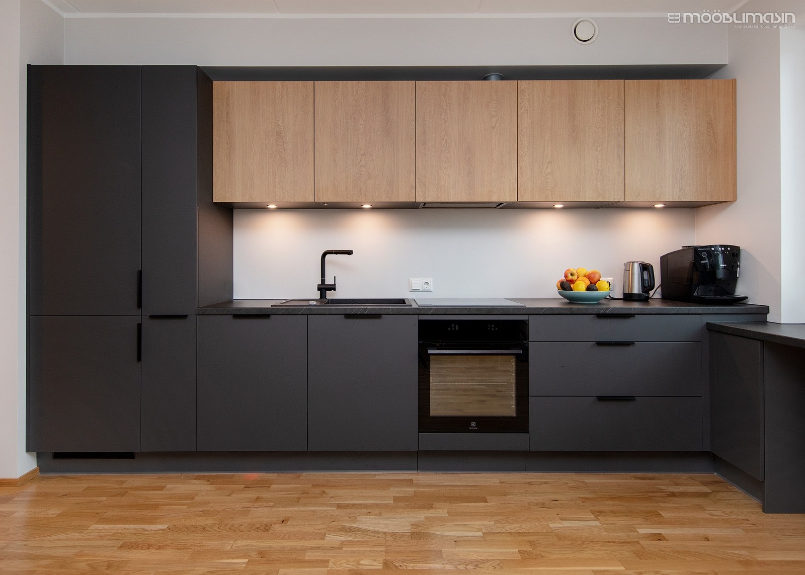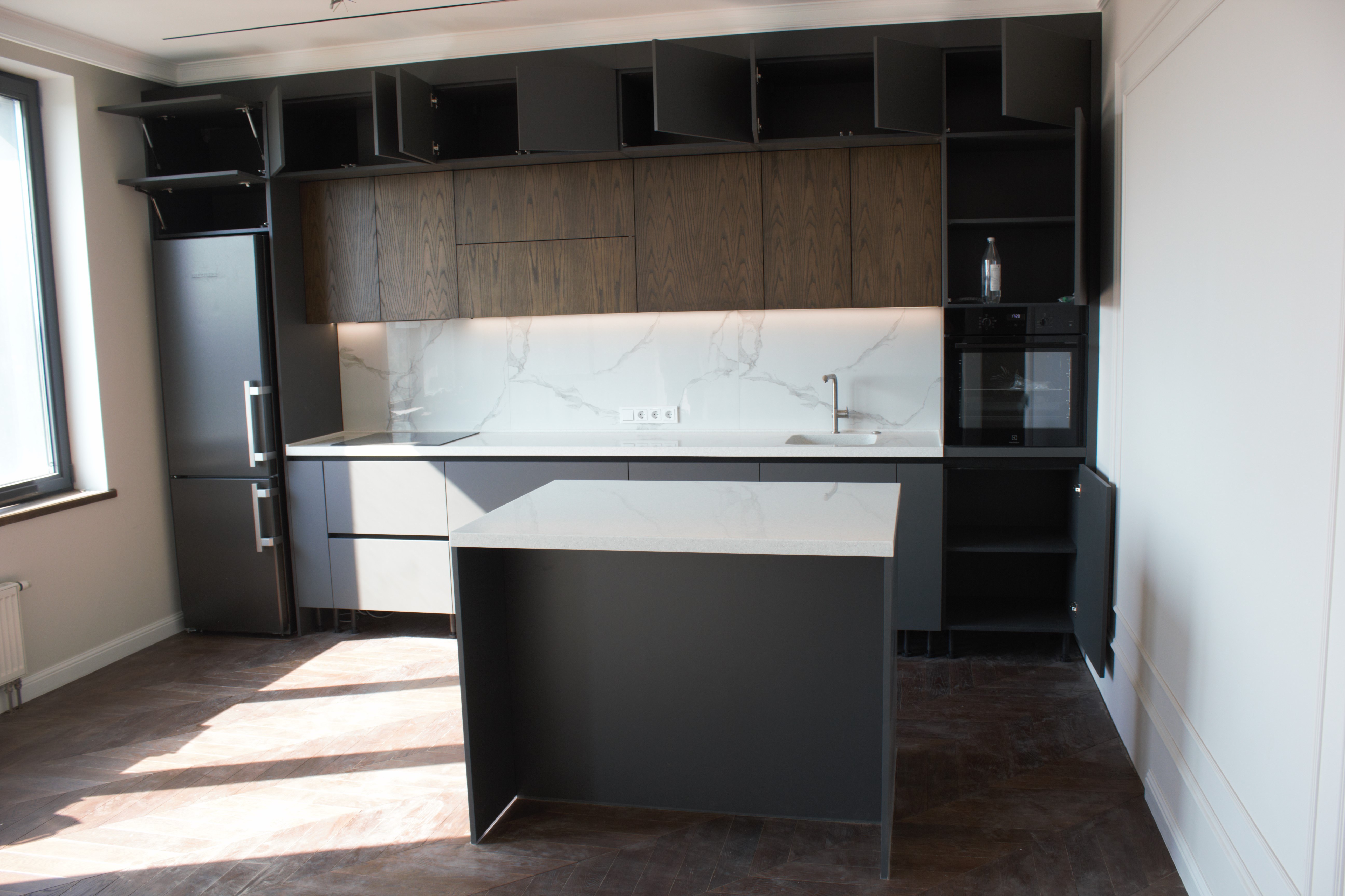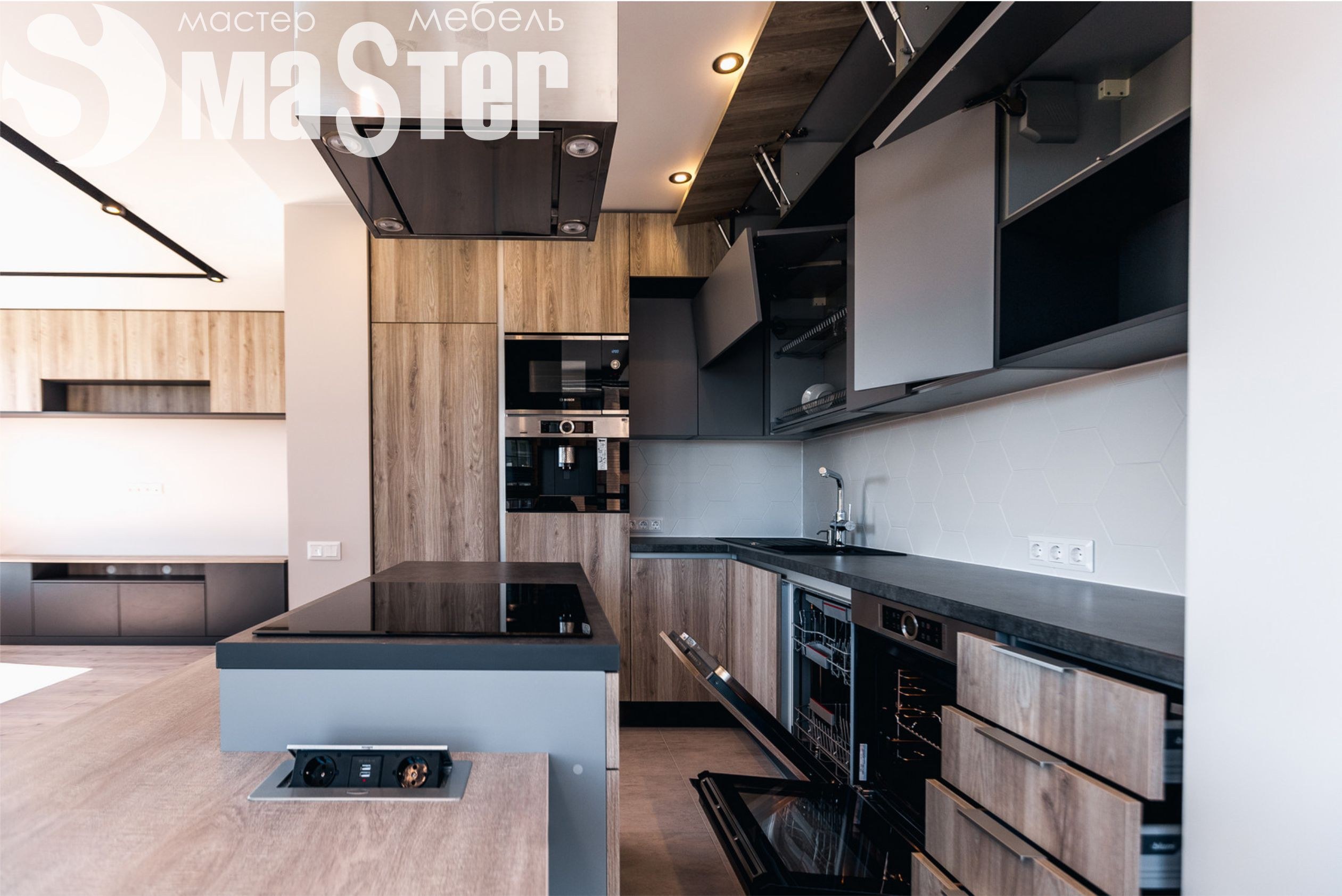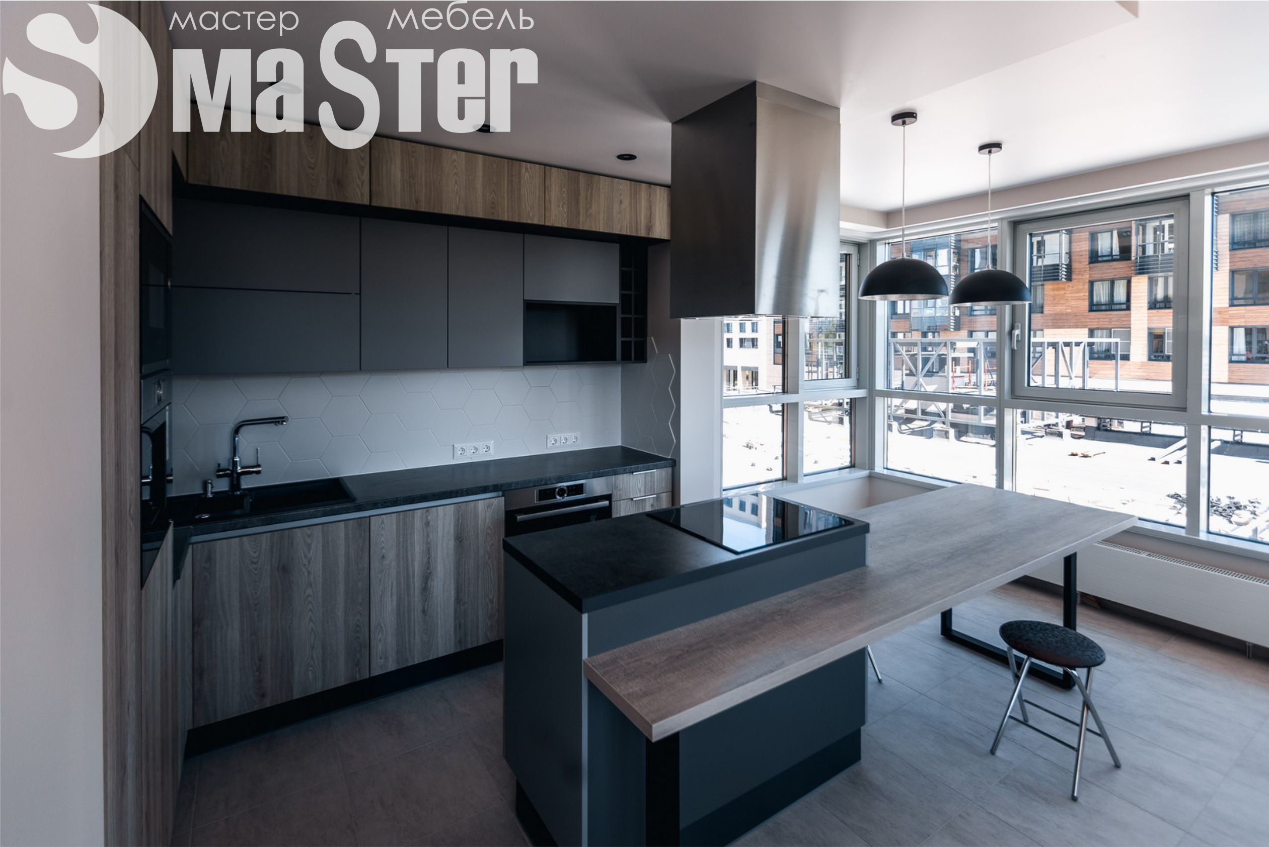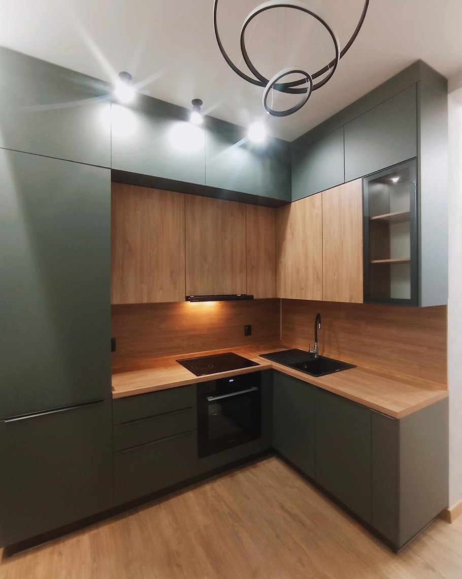 Кухонный гарнитур лофт Регина песочный/Диамант серый, дуб дикий 2,4 м