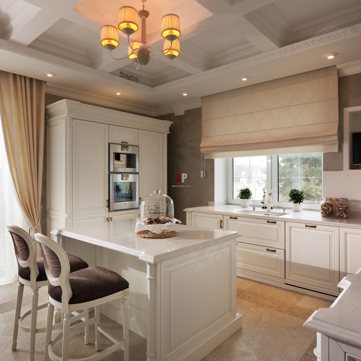 Интерьер кухни в частном доме Неоклассика