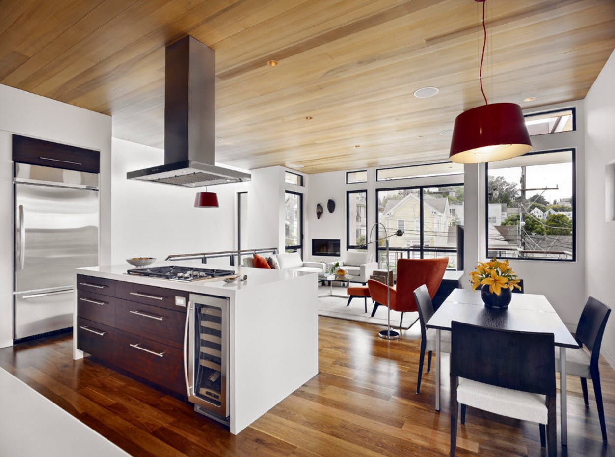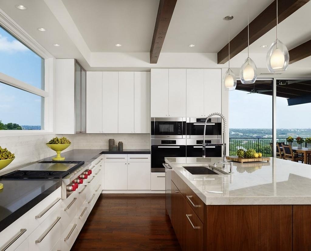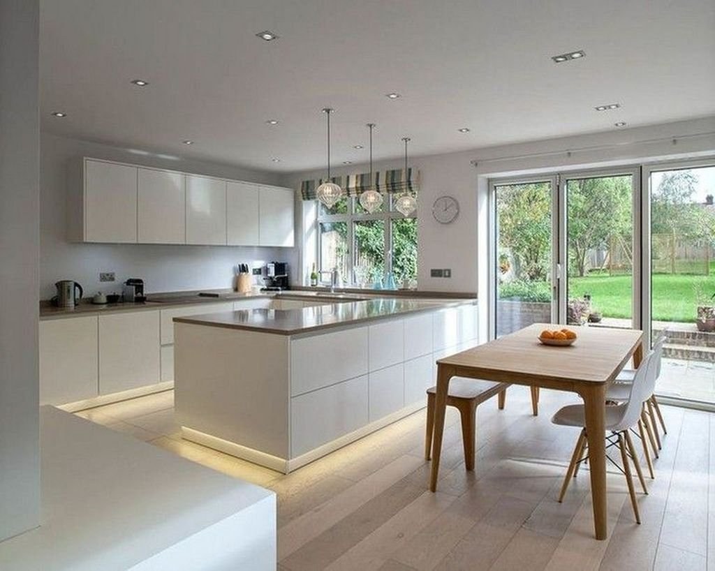 Скромный интерьер кухни в частном доме в современном стиле (99 фото)