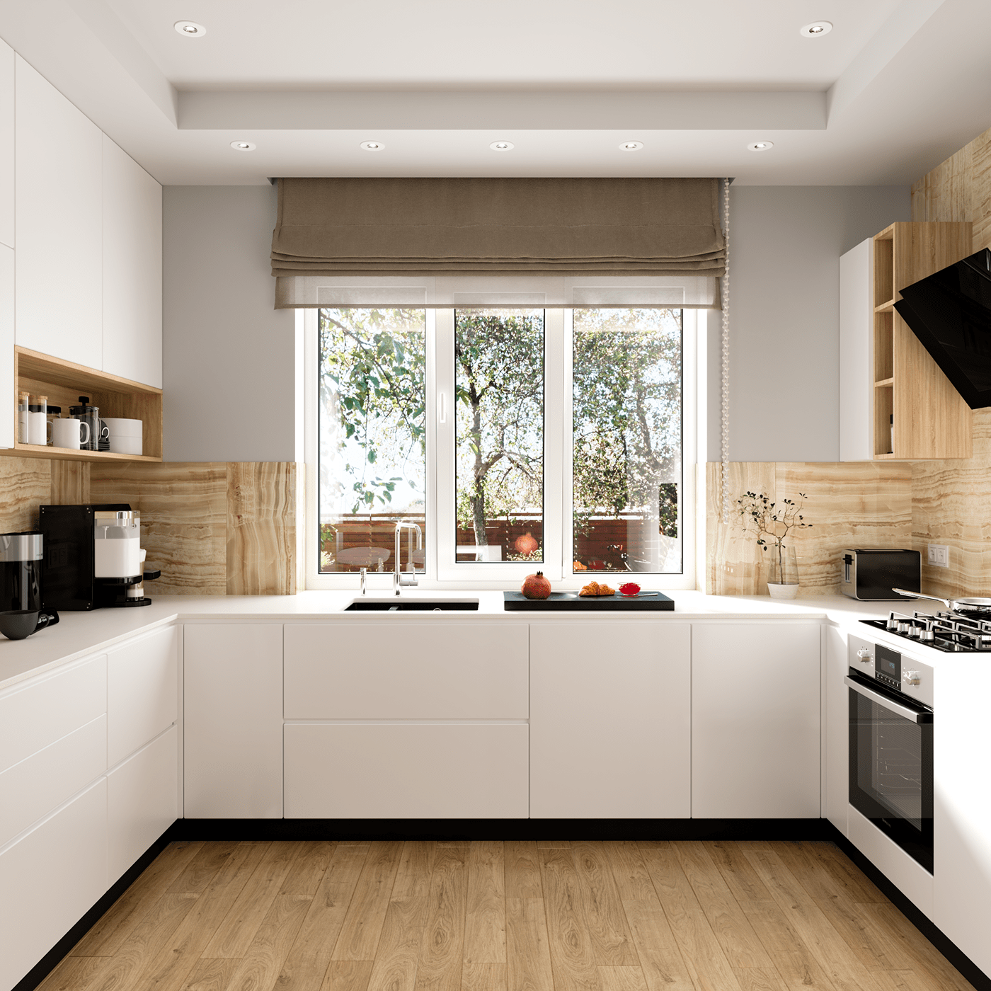 Современный кухонный гарнитур с окном