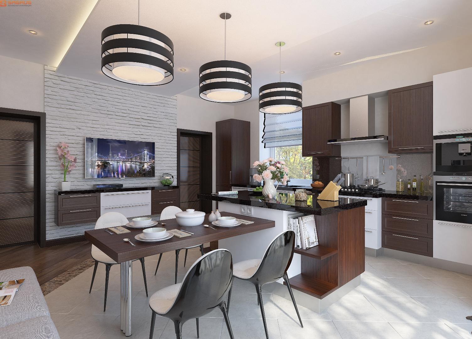 Современная кухня гостиная