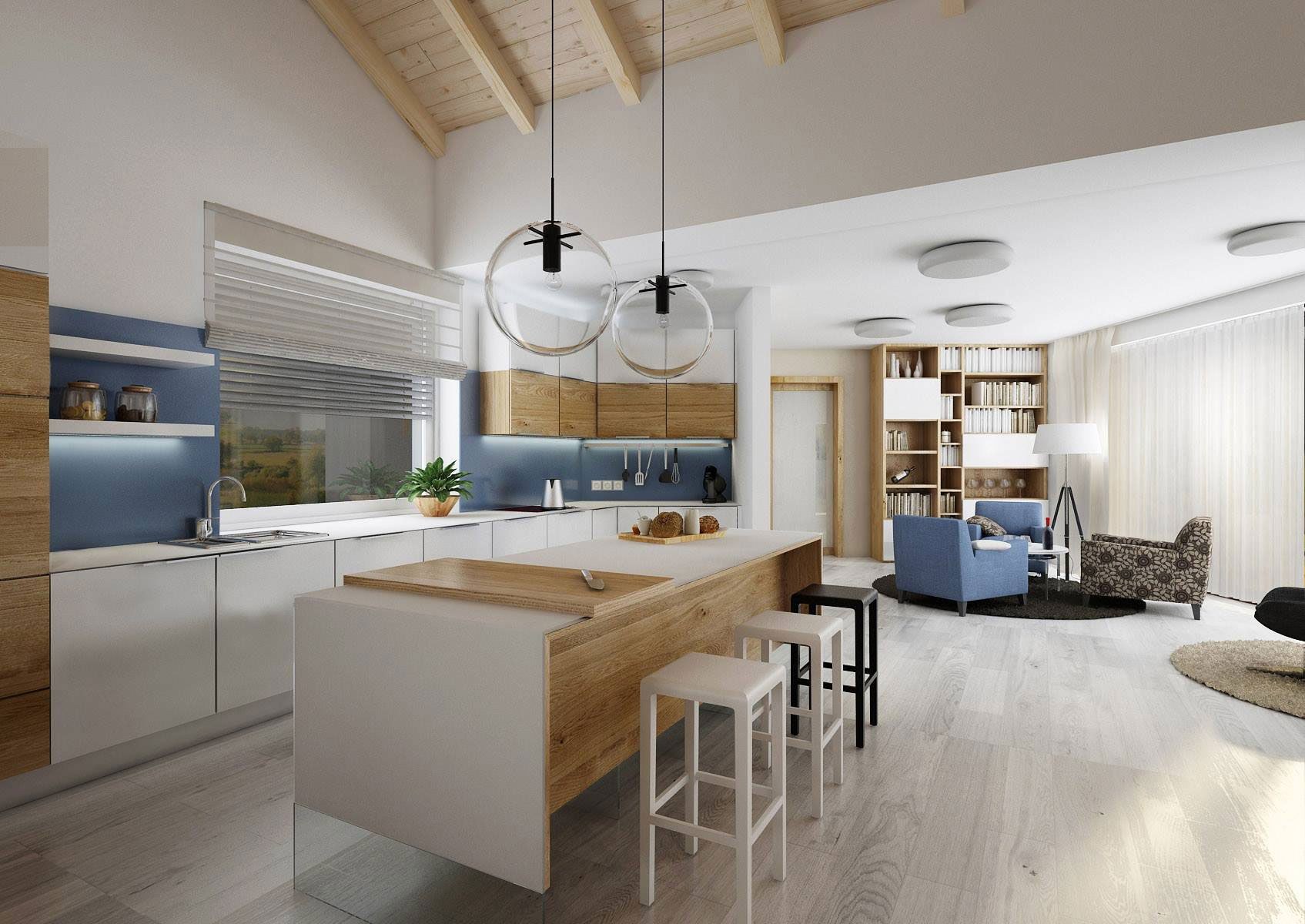 Кухня гостиная с островом