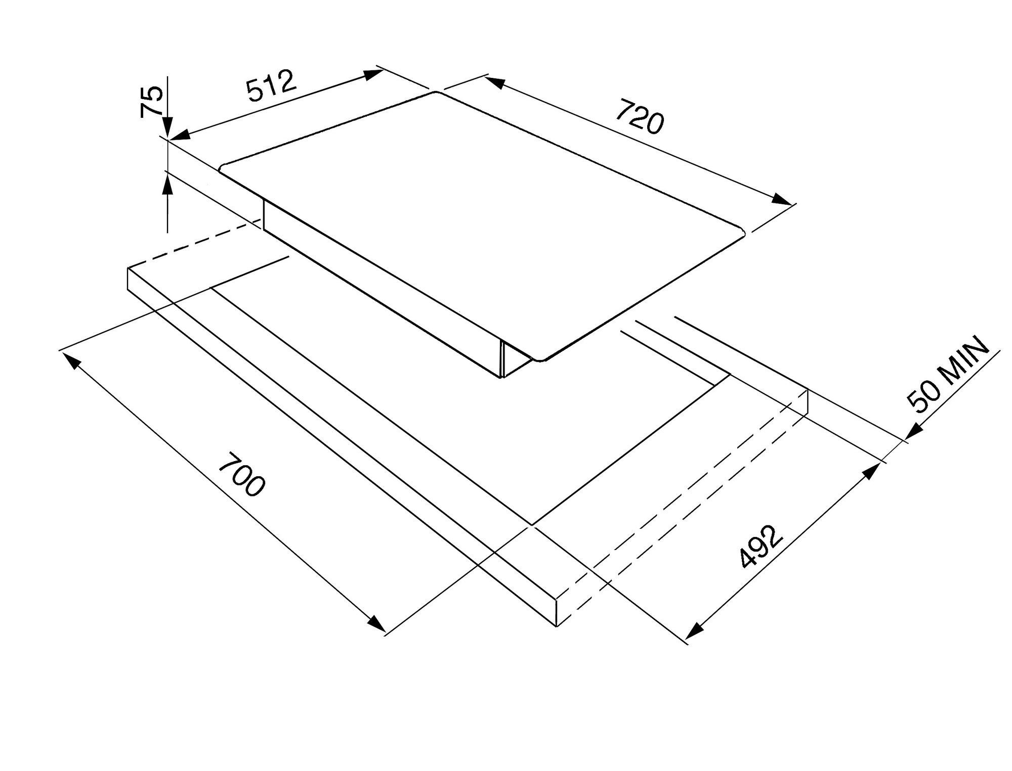 Вырез в столешнице под варочную панель Indesit ib88b60