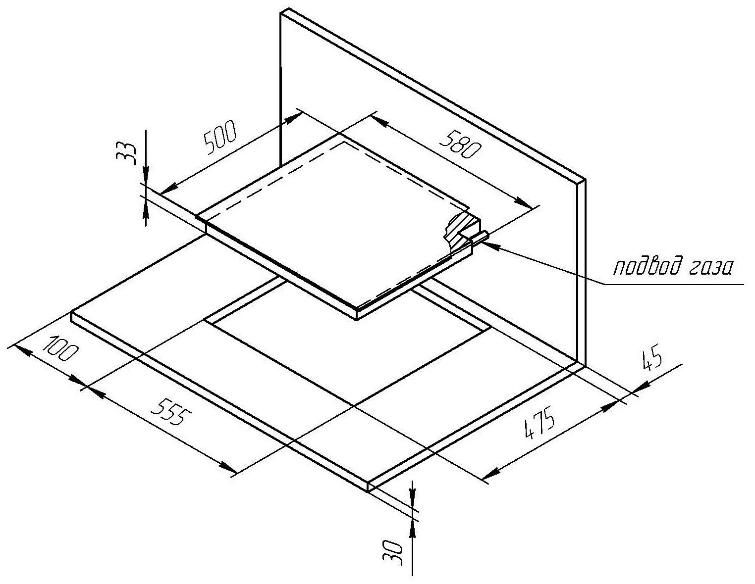 Схема установки индукционной варочной панели над духовкой