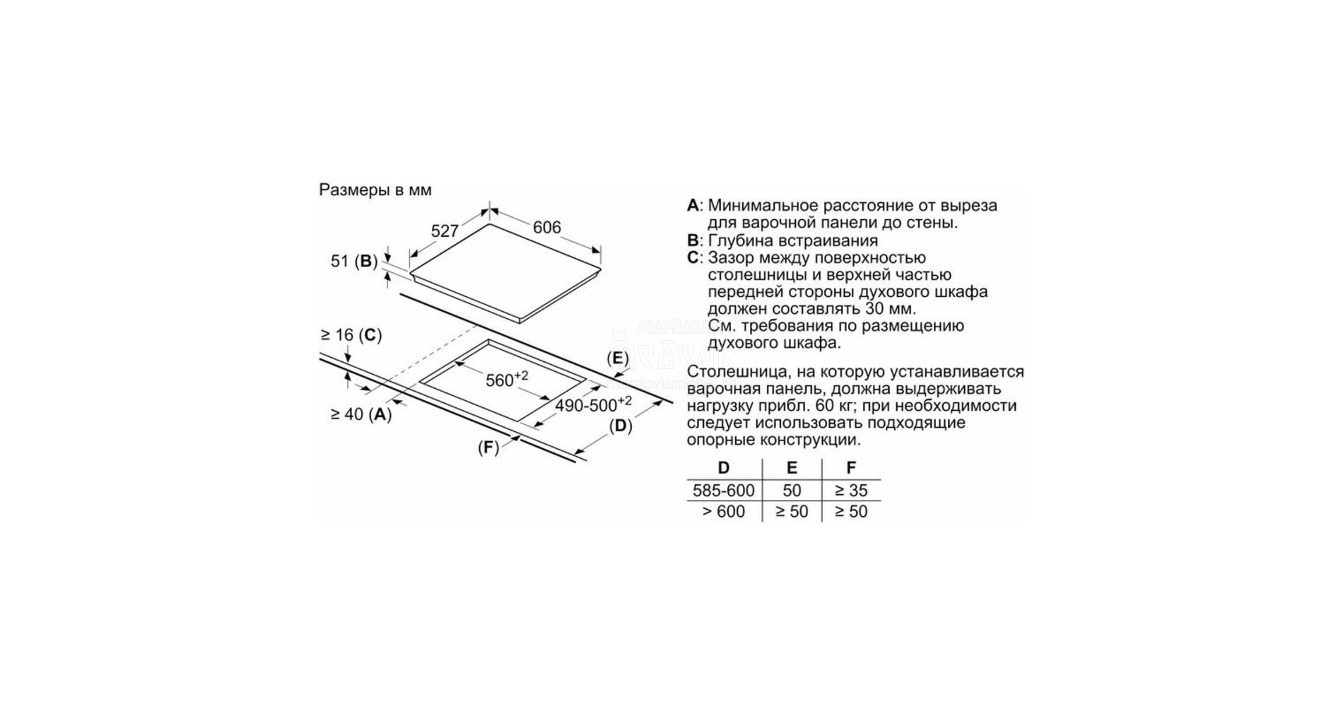 Толщина столешницы для варочной панели электрической