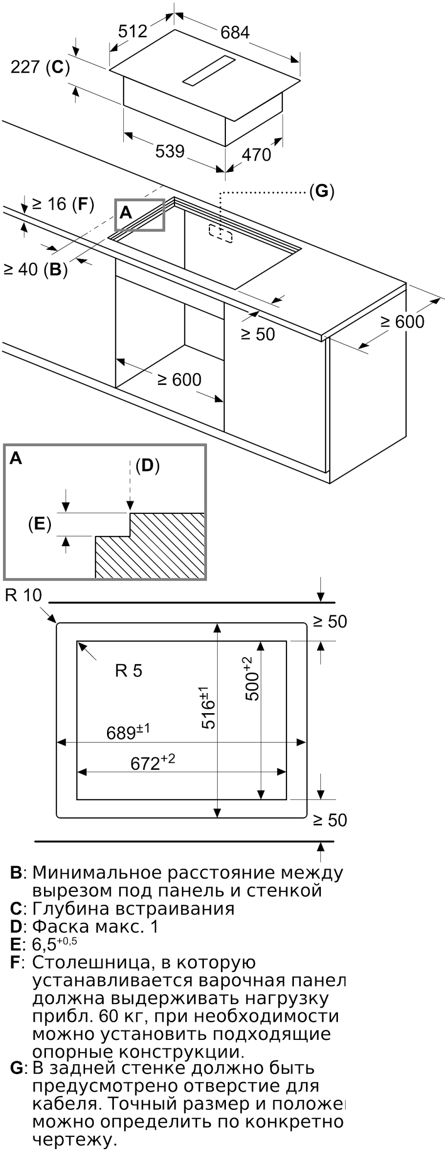 Индукционная варочная панель бош схема встройки в шкаф с ящиками