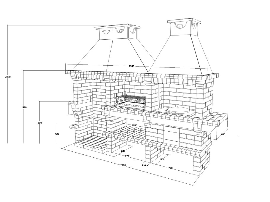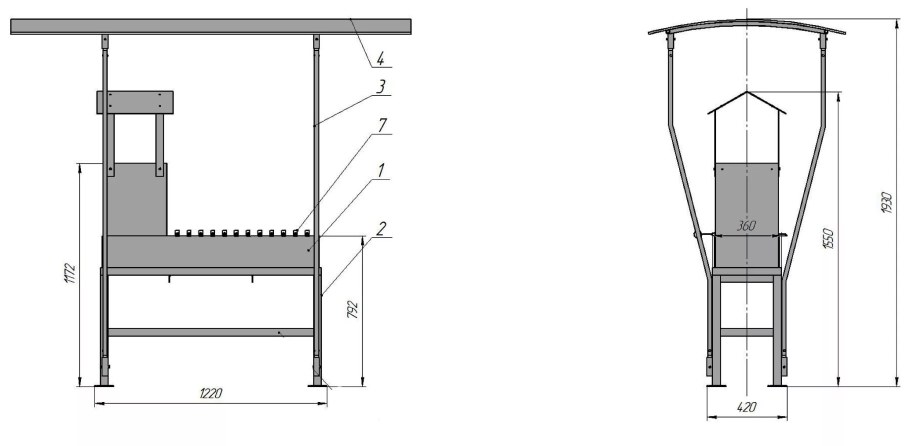 Мангал с крышей "пикник" 1700х1250х2300 мм