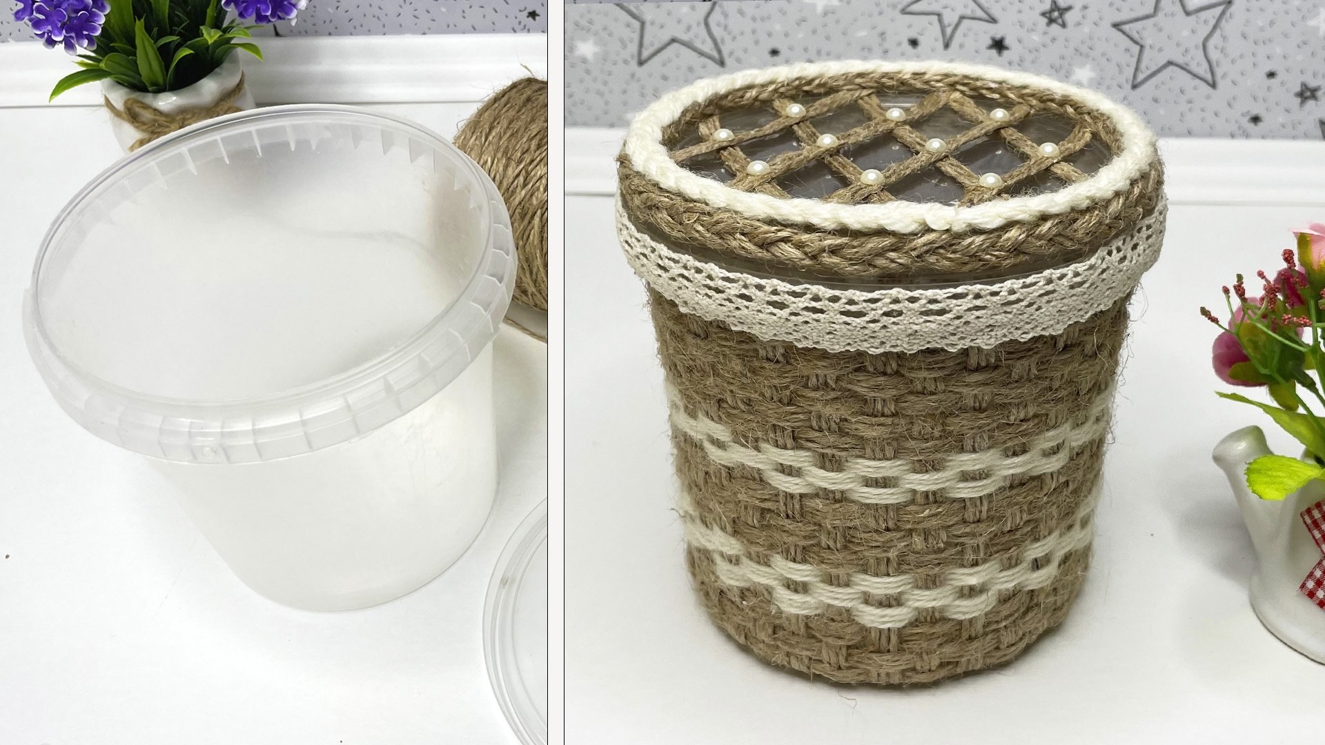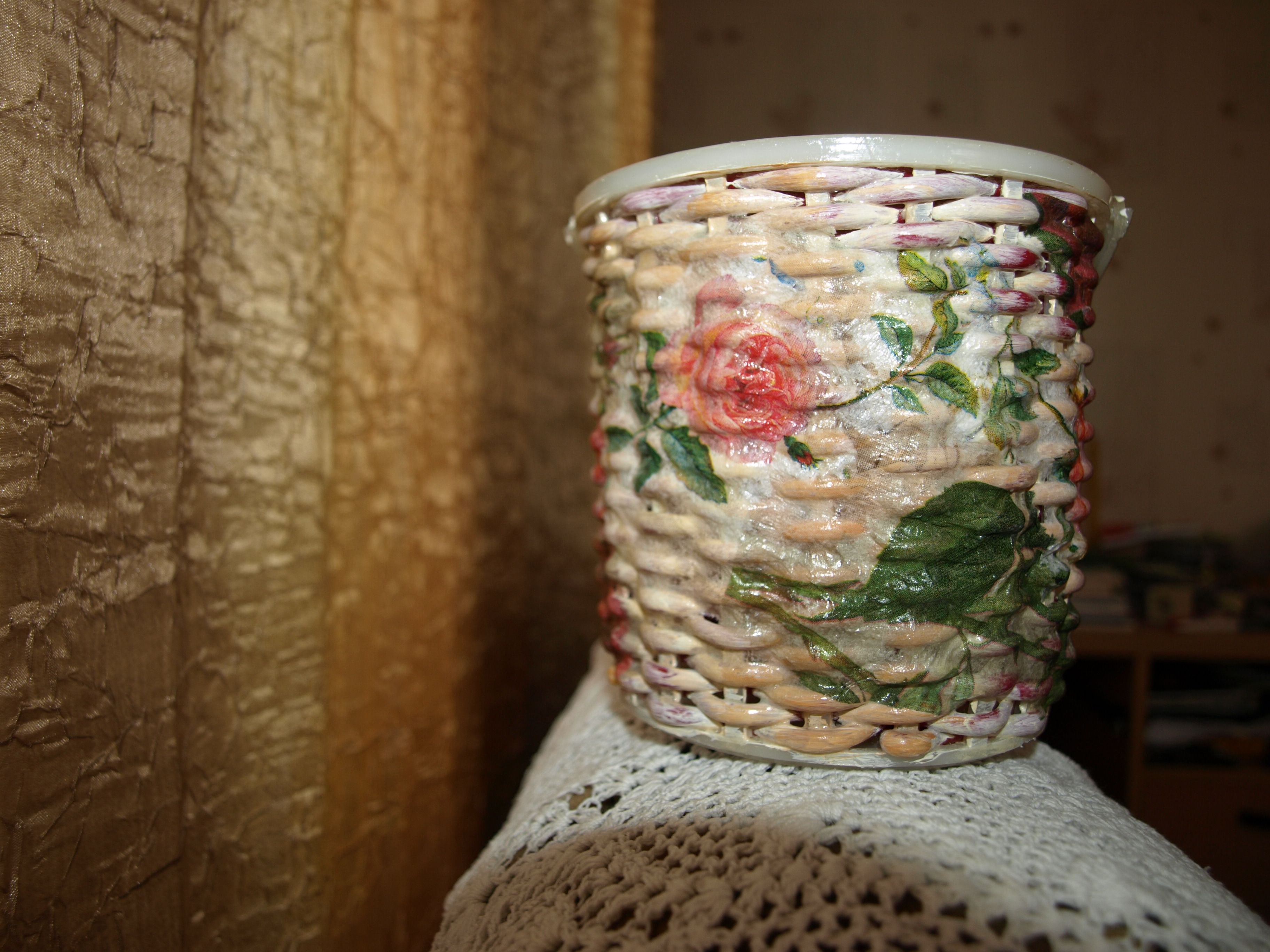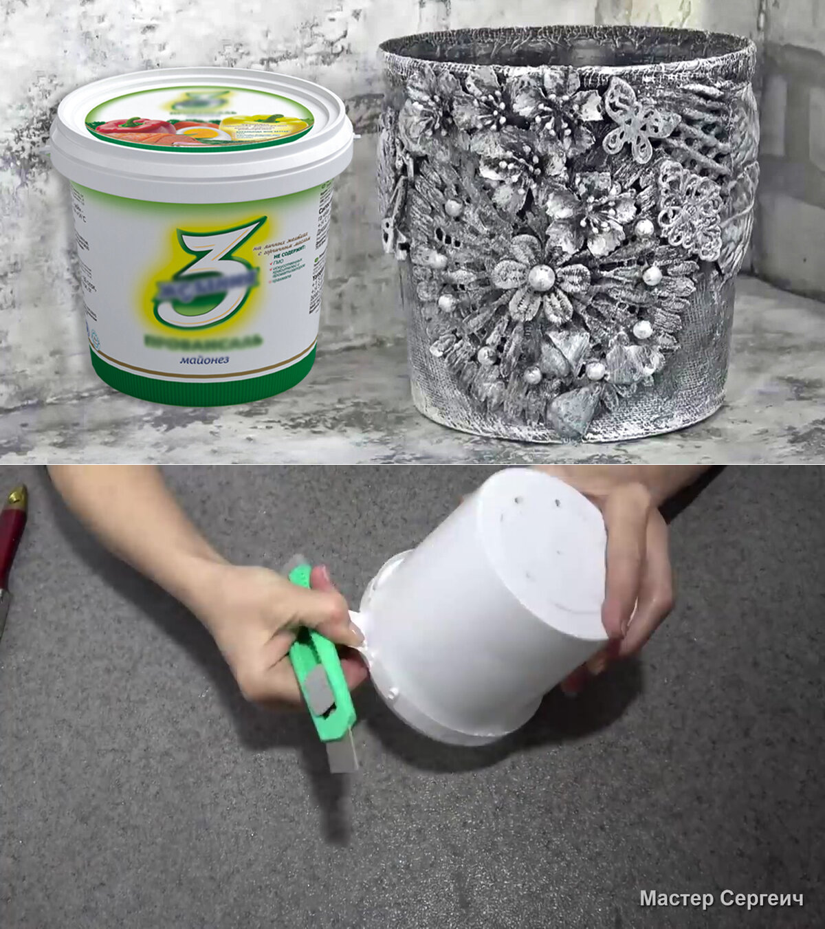 Декор пластикового ведра из-под майонеза