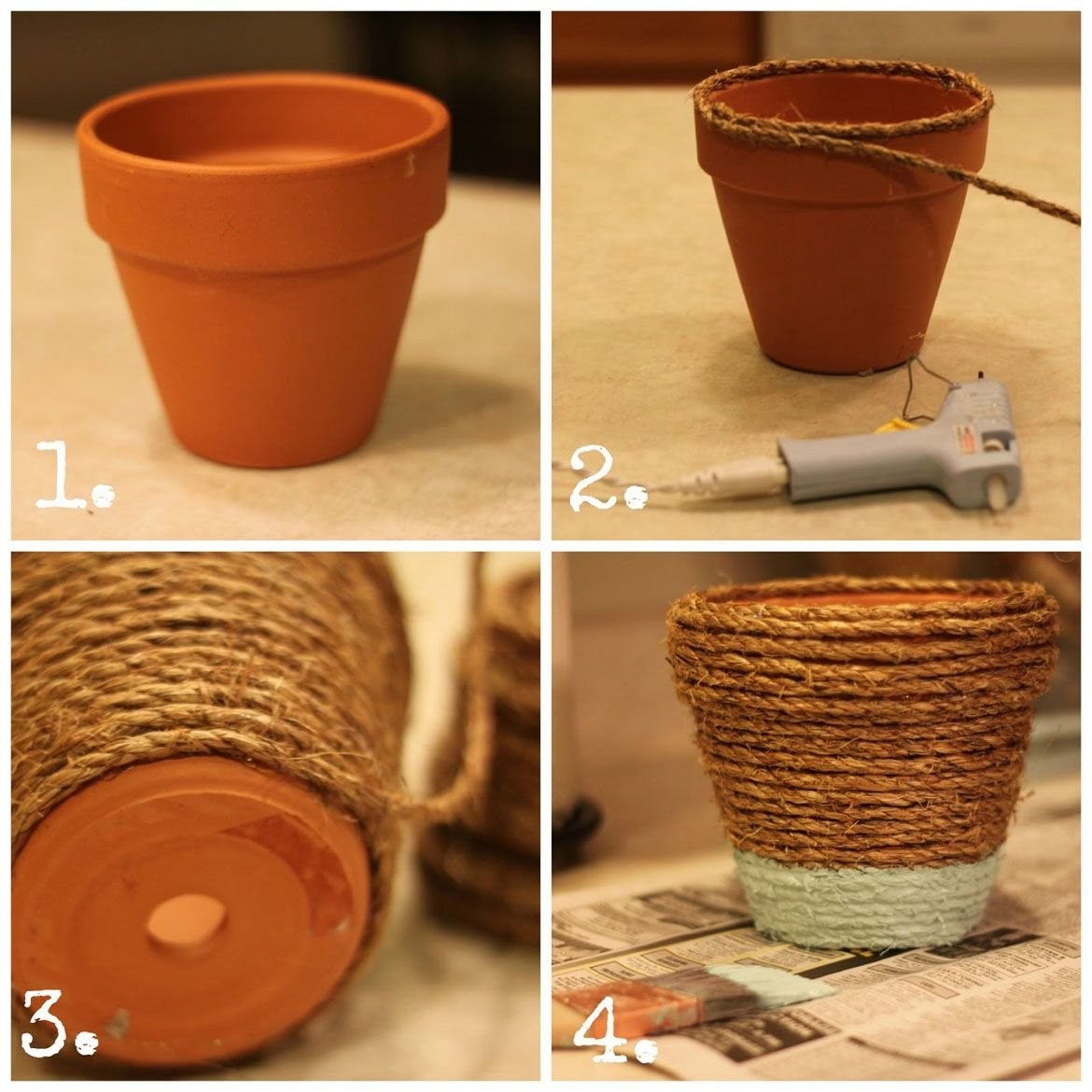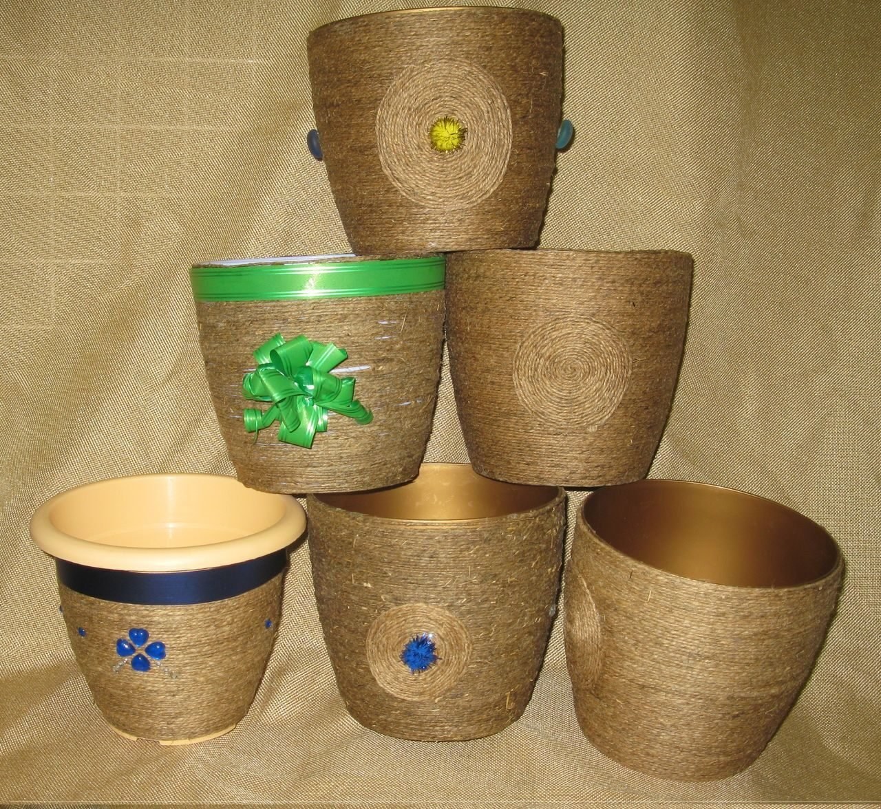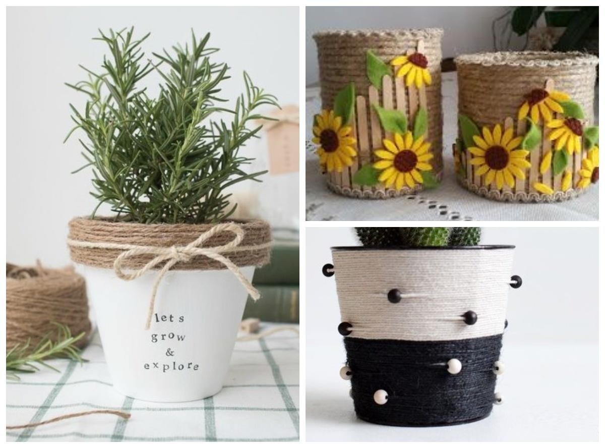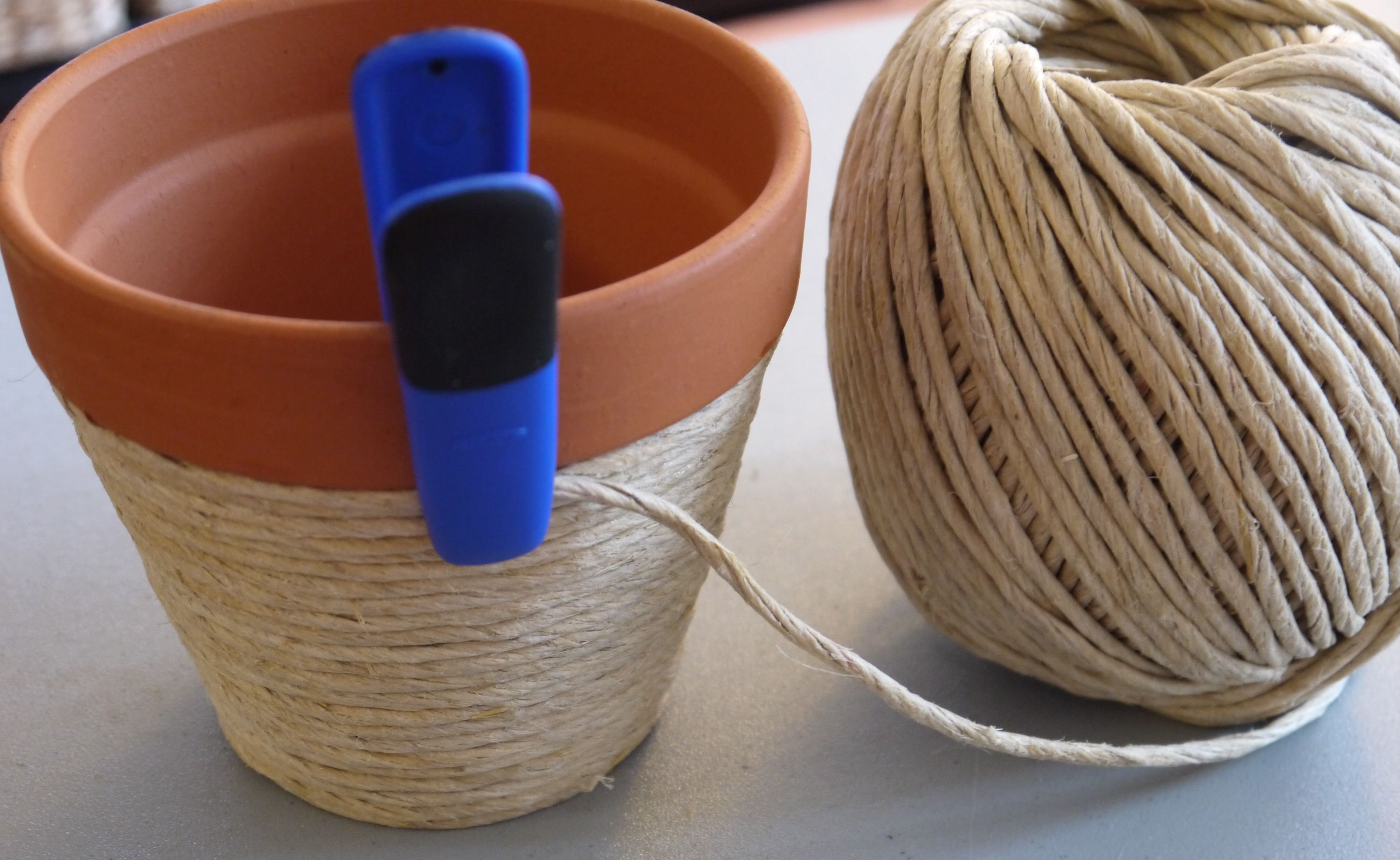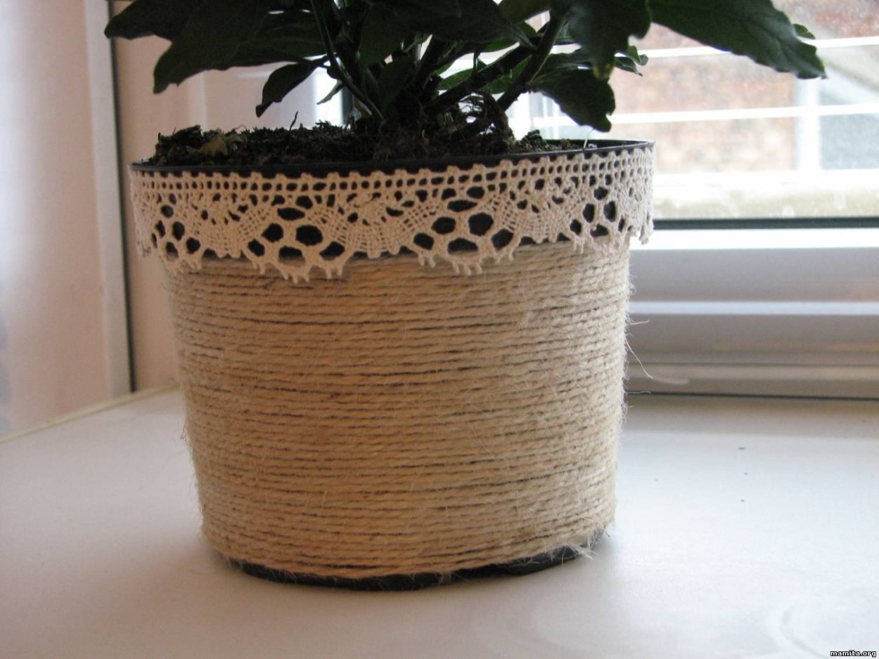 Декор цветочного горшка шпагатом
