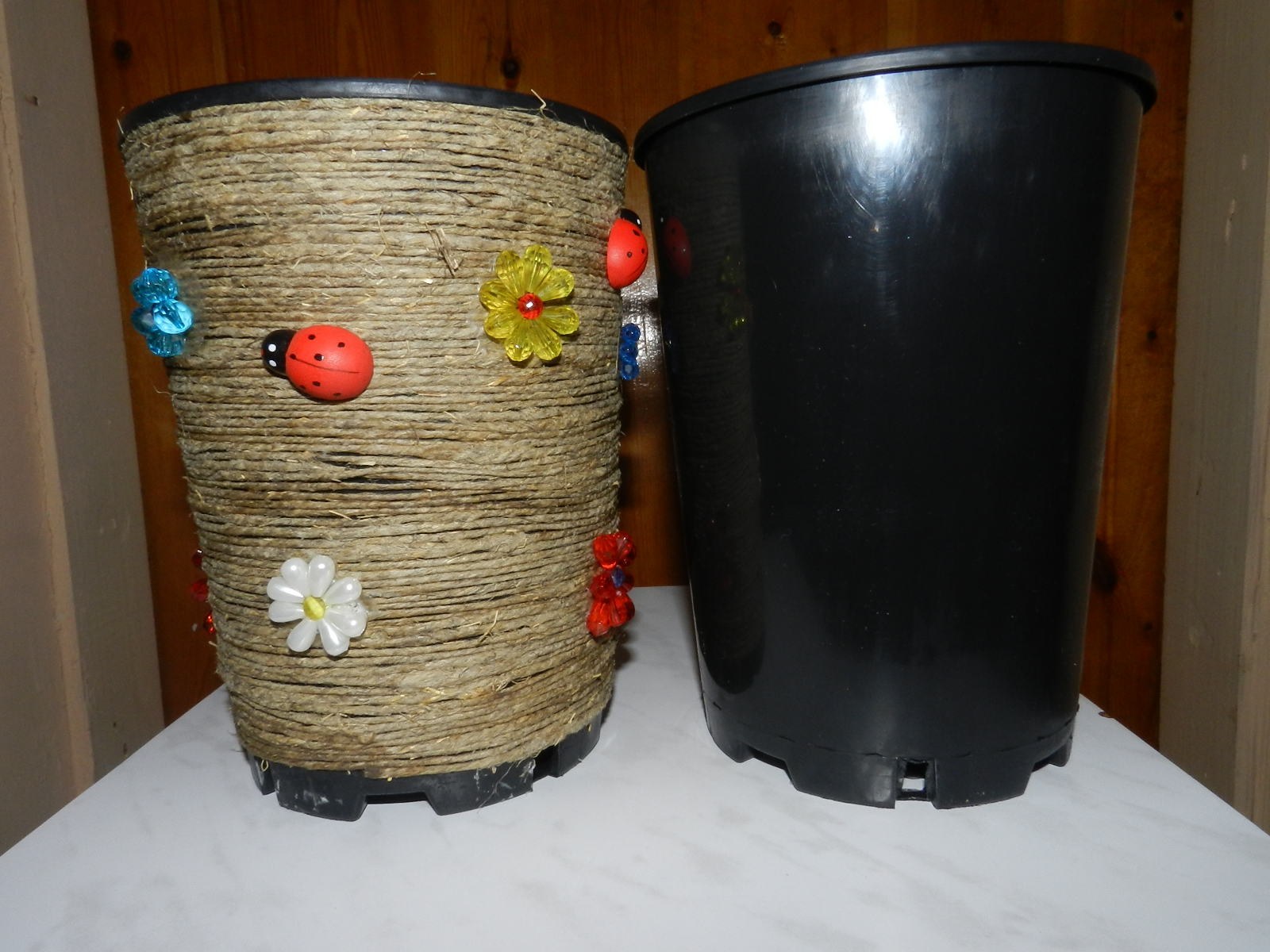 Декор пластиковых цветочных горшков