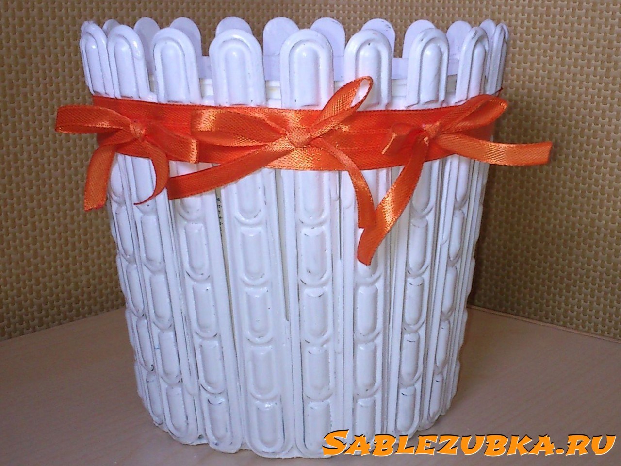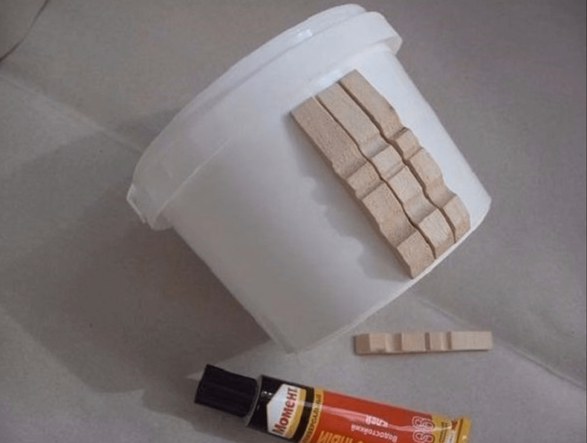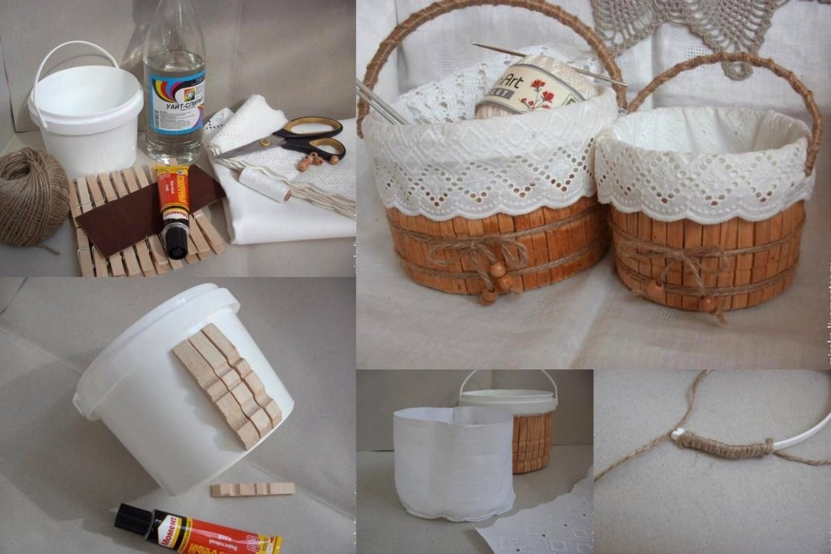 Ведро из деревянных прищепок