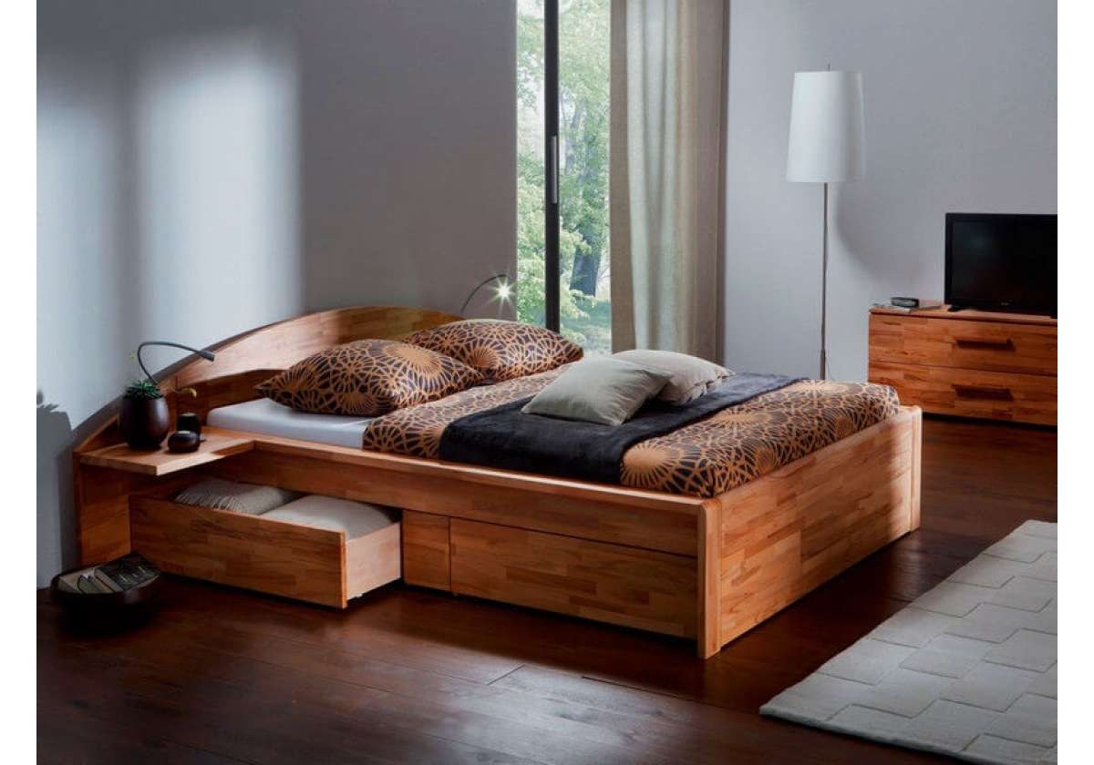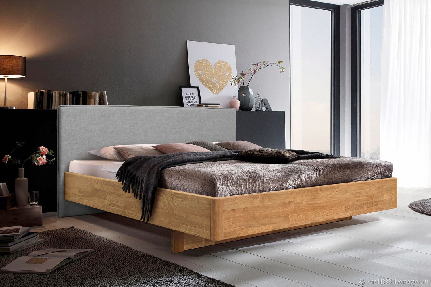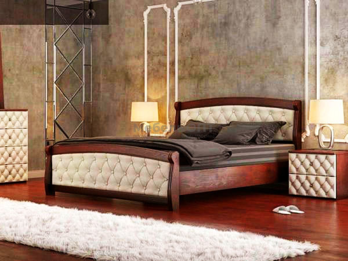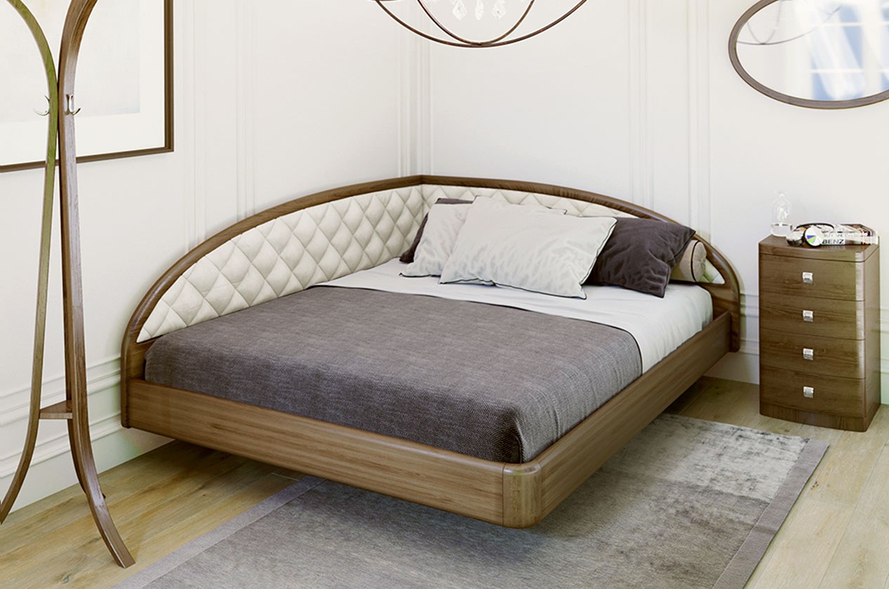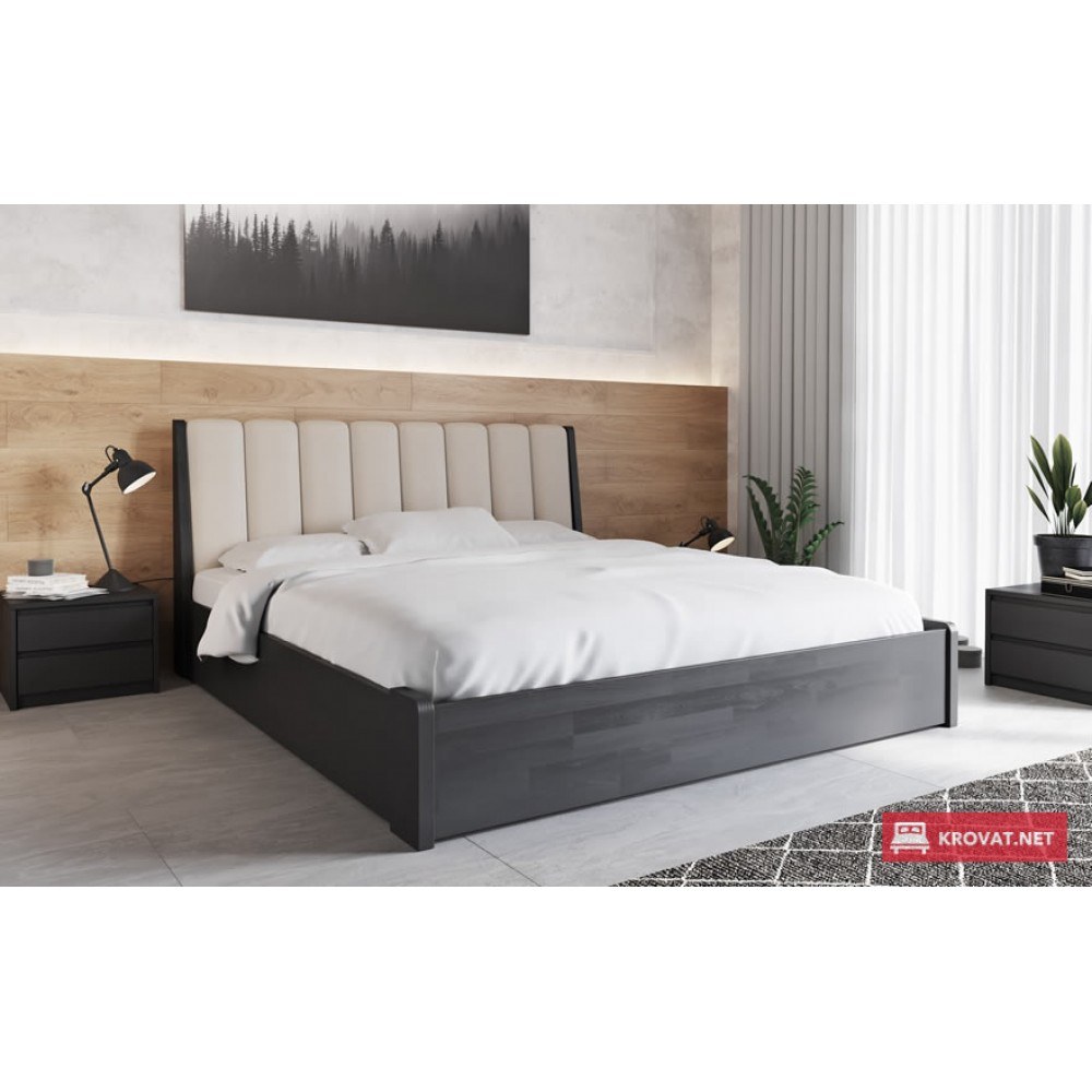 Кровать из массива дерева с мягким изголовьем (82 фото)