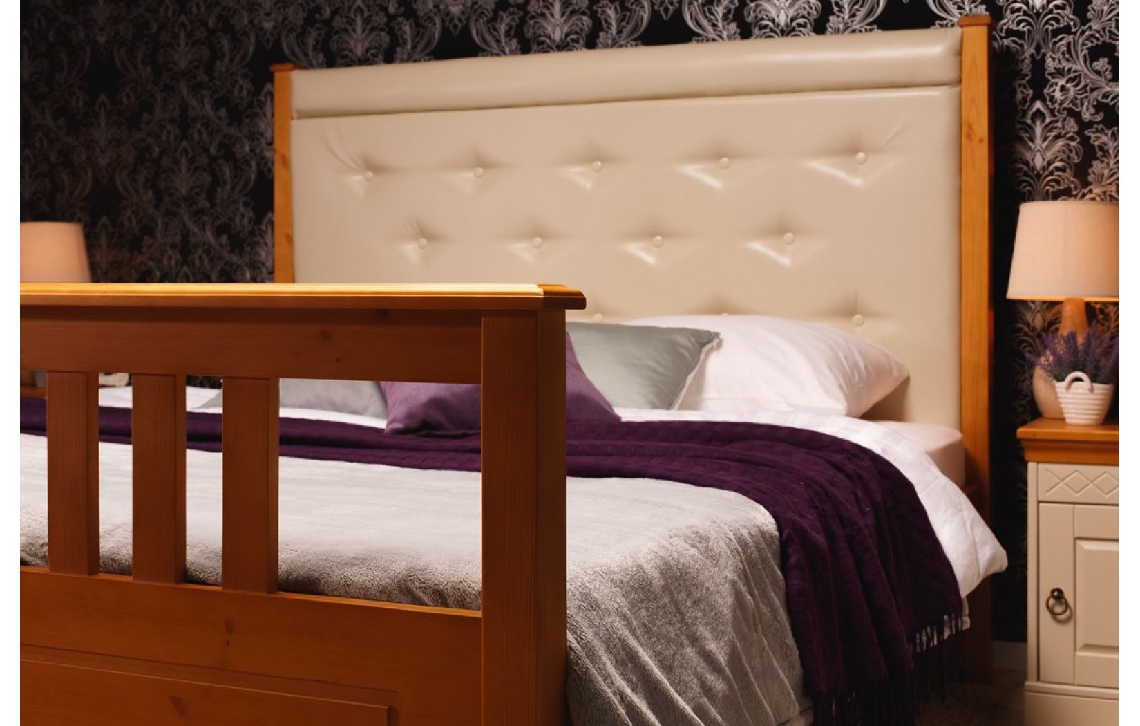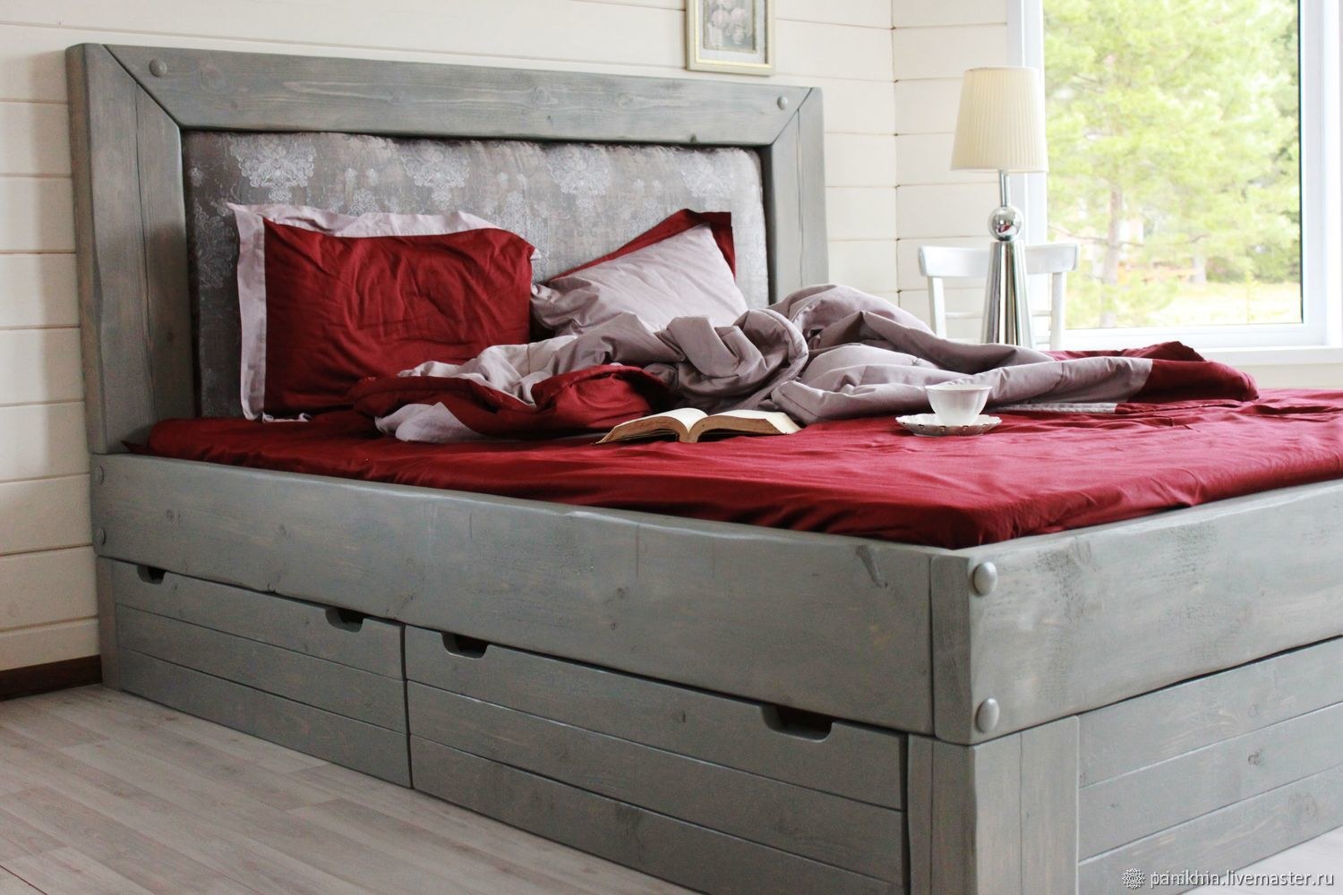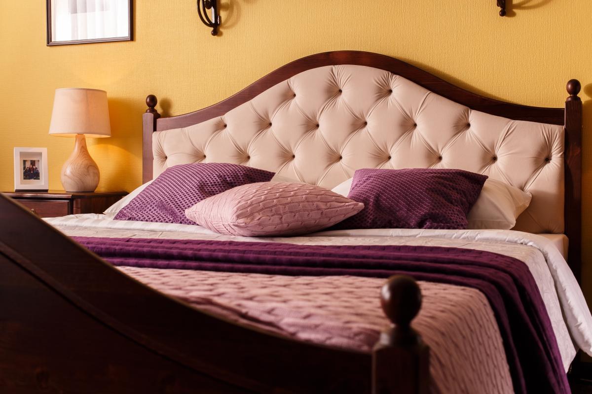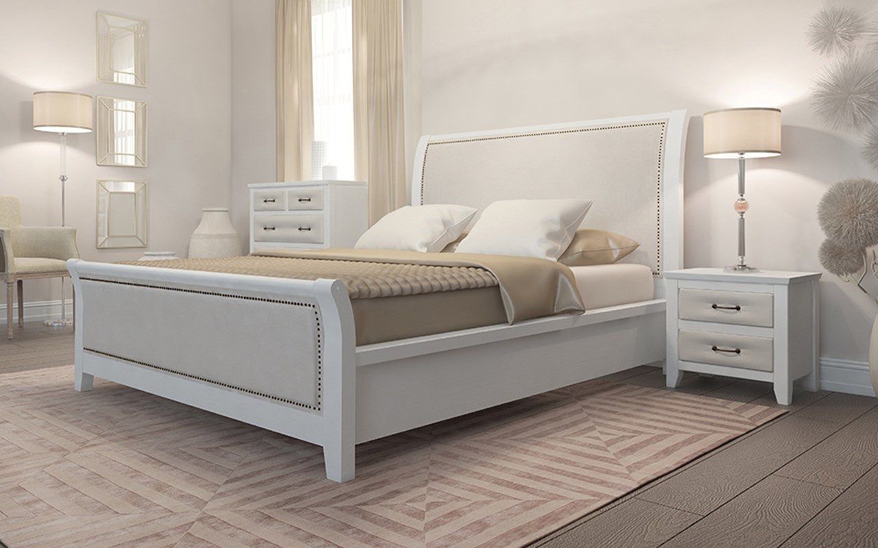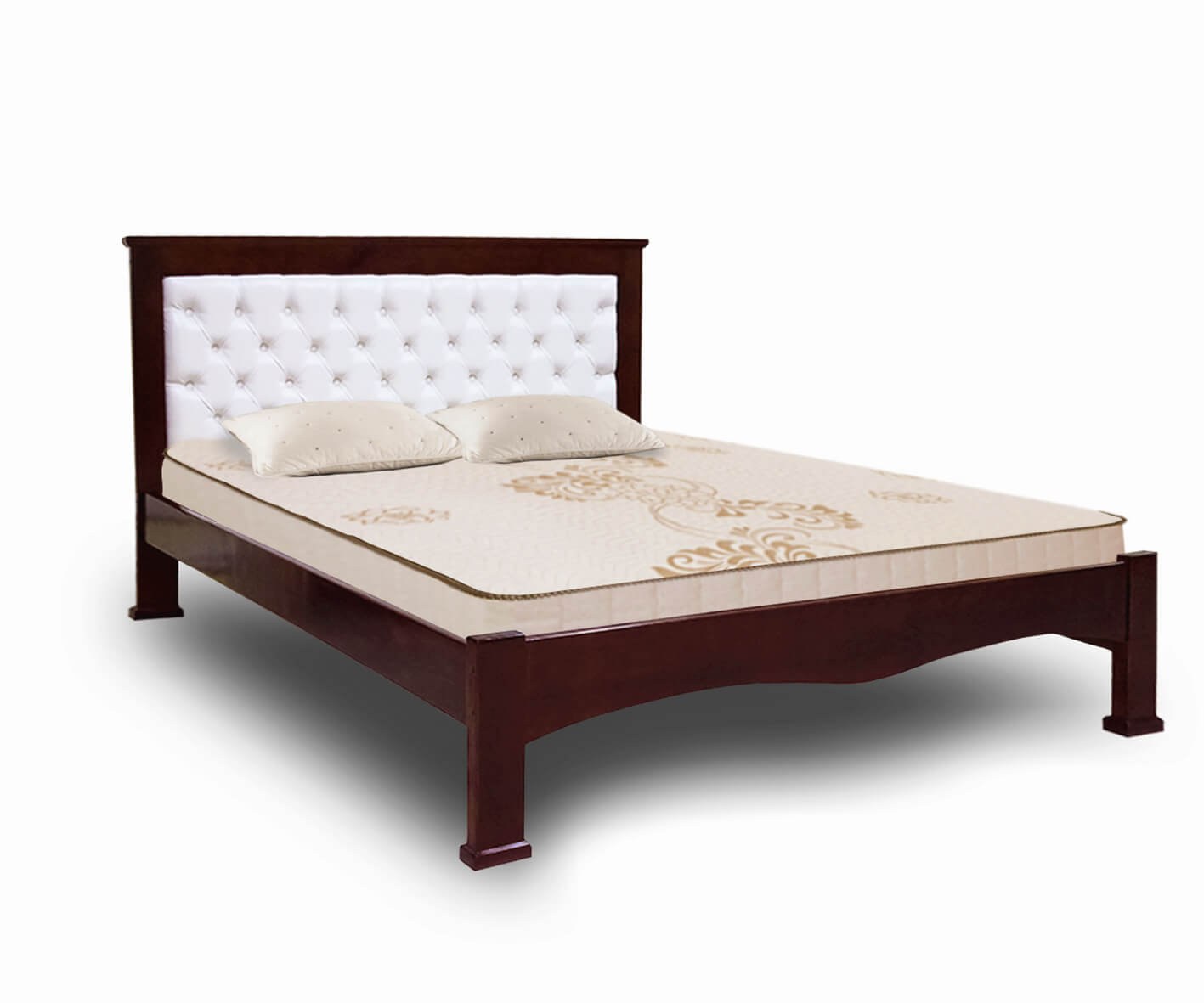 Кровать из массива дерева с мягким изголовьем (82 фото)