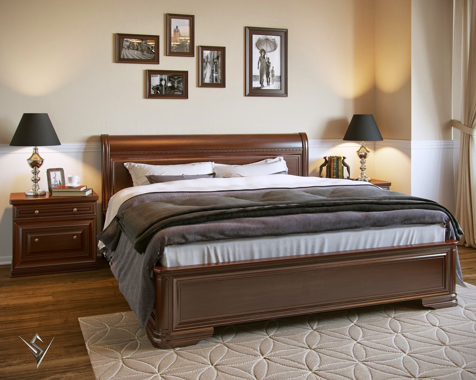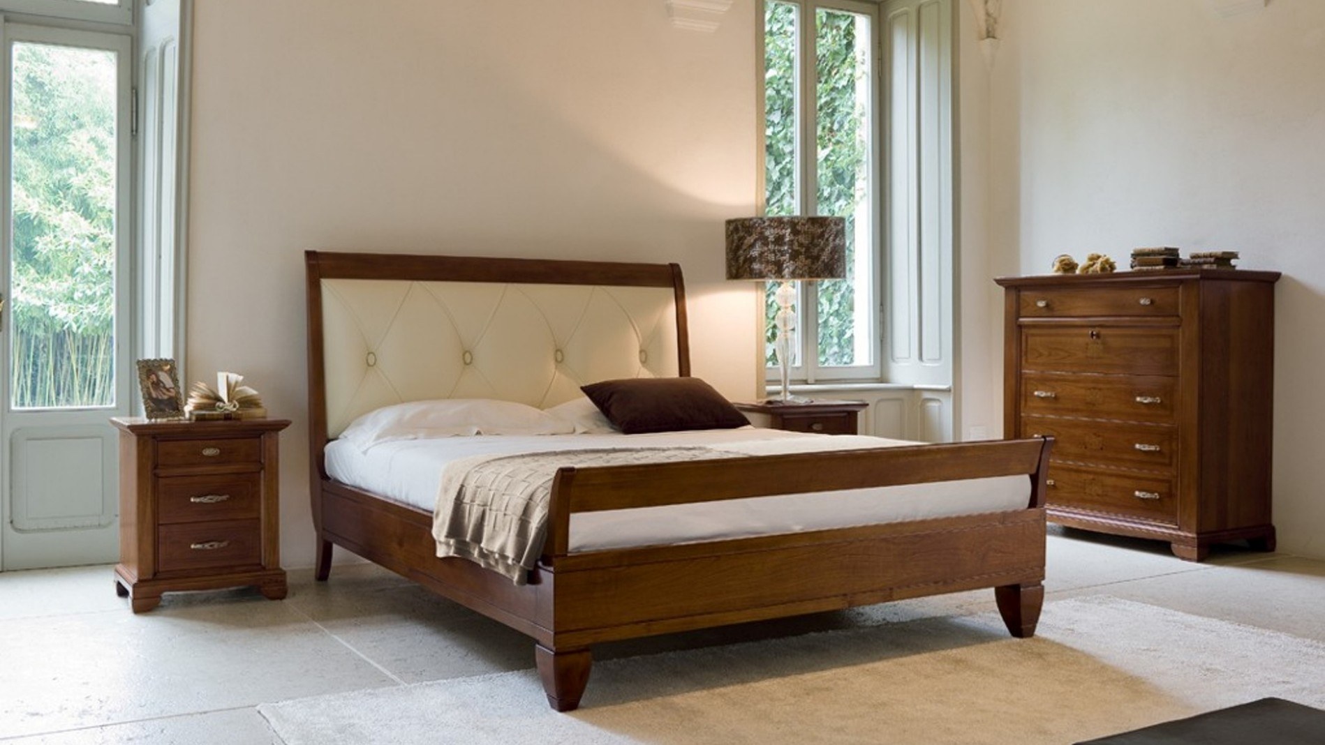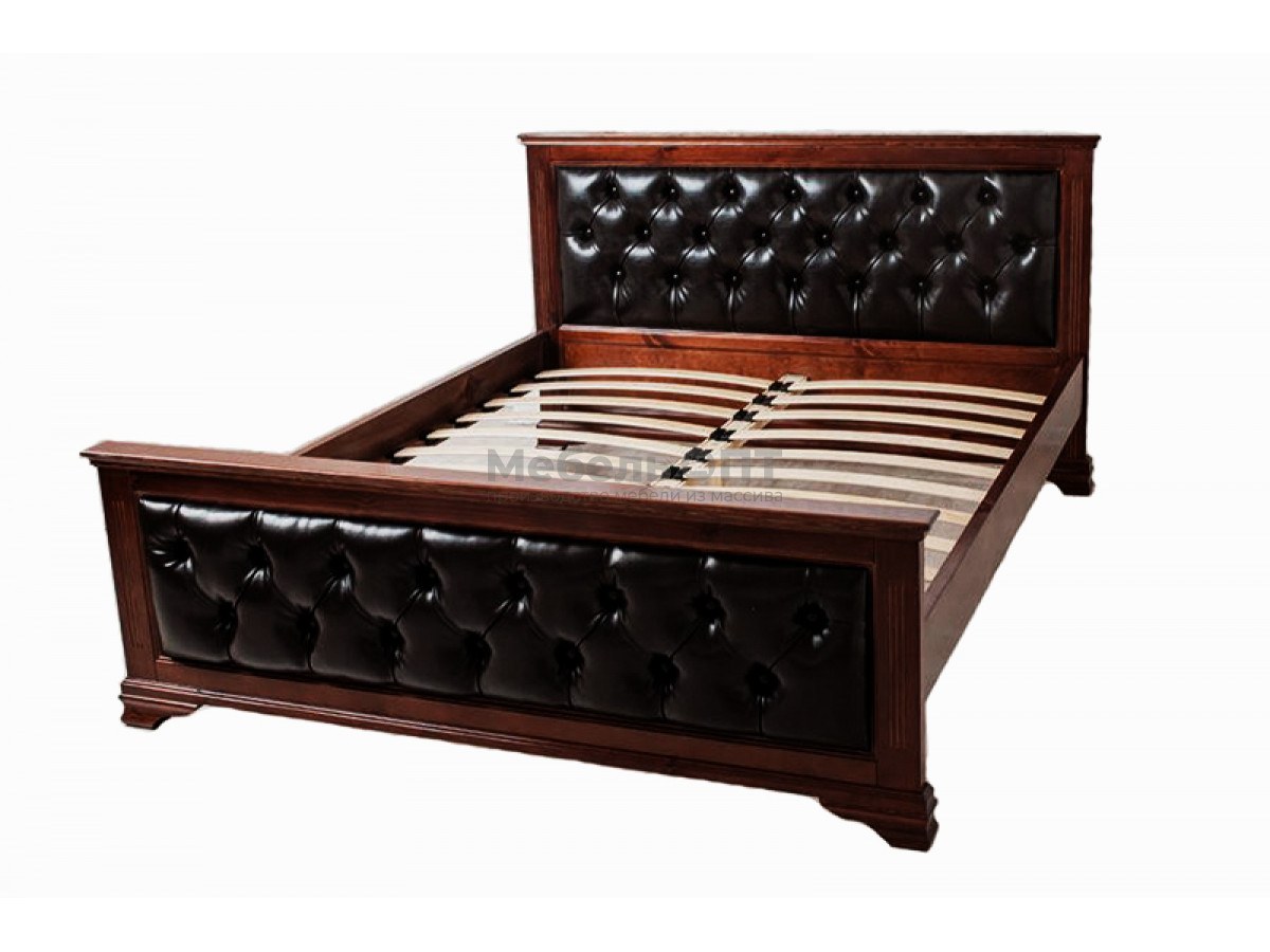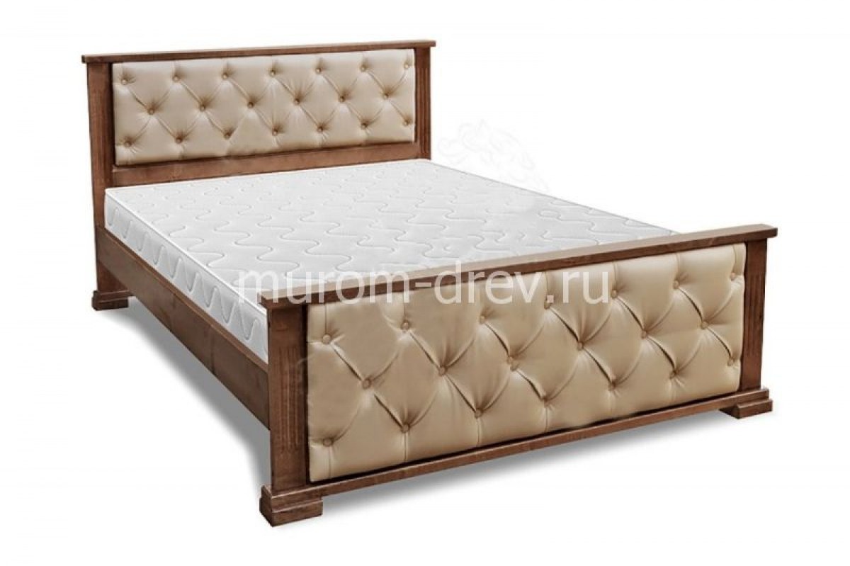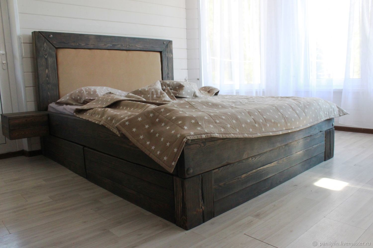 Кровать из массива дерева с мягким изголовьем (82 фото)