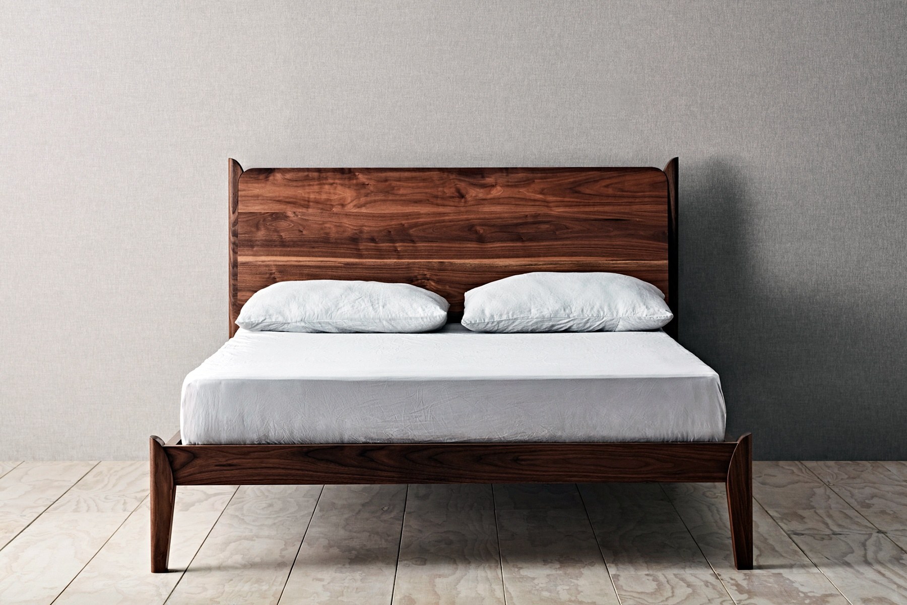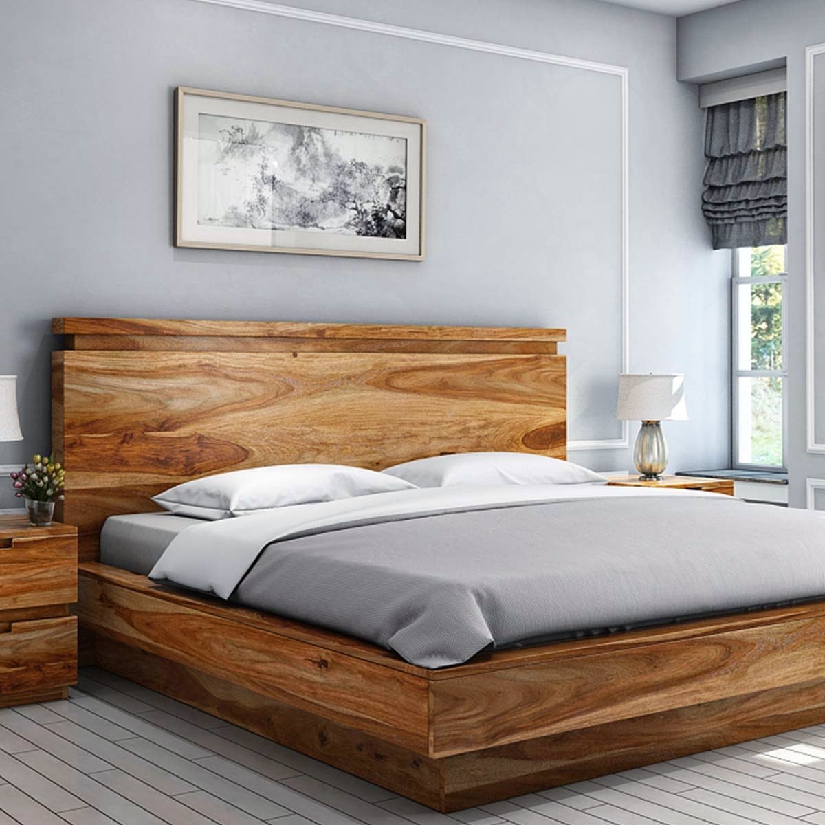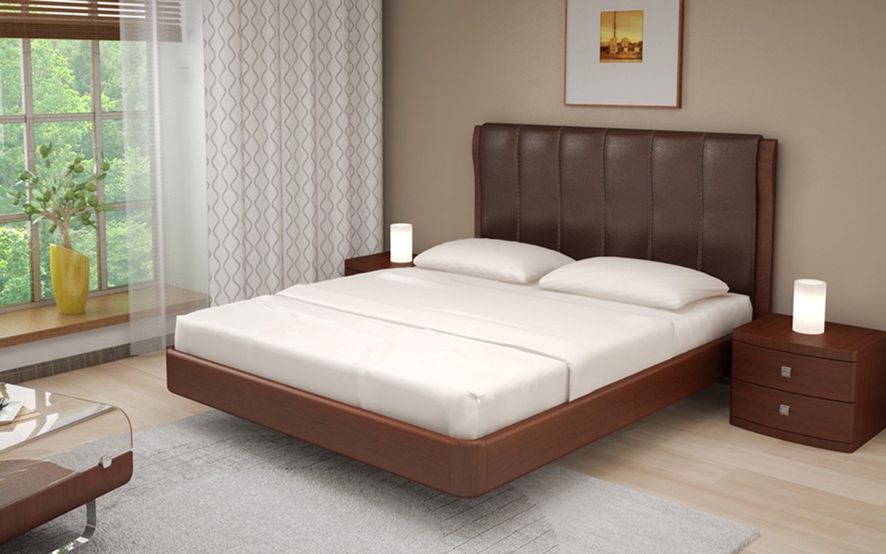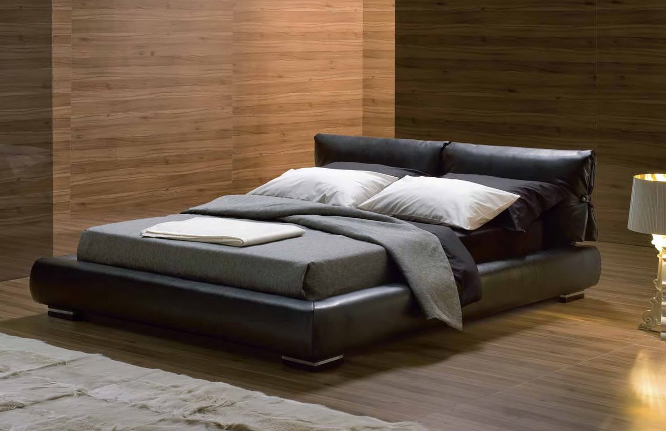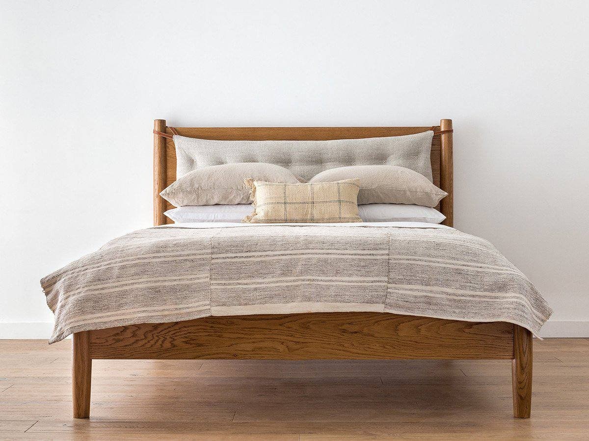 Кровать из массива дерева с мягким изголовьем (82 фото)