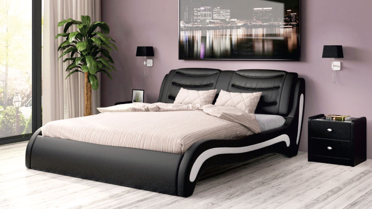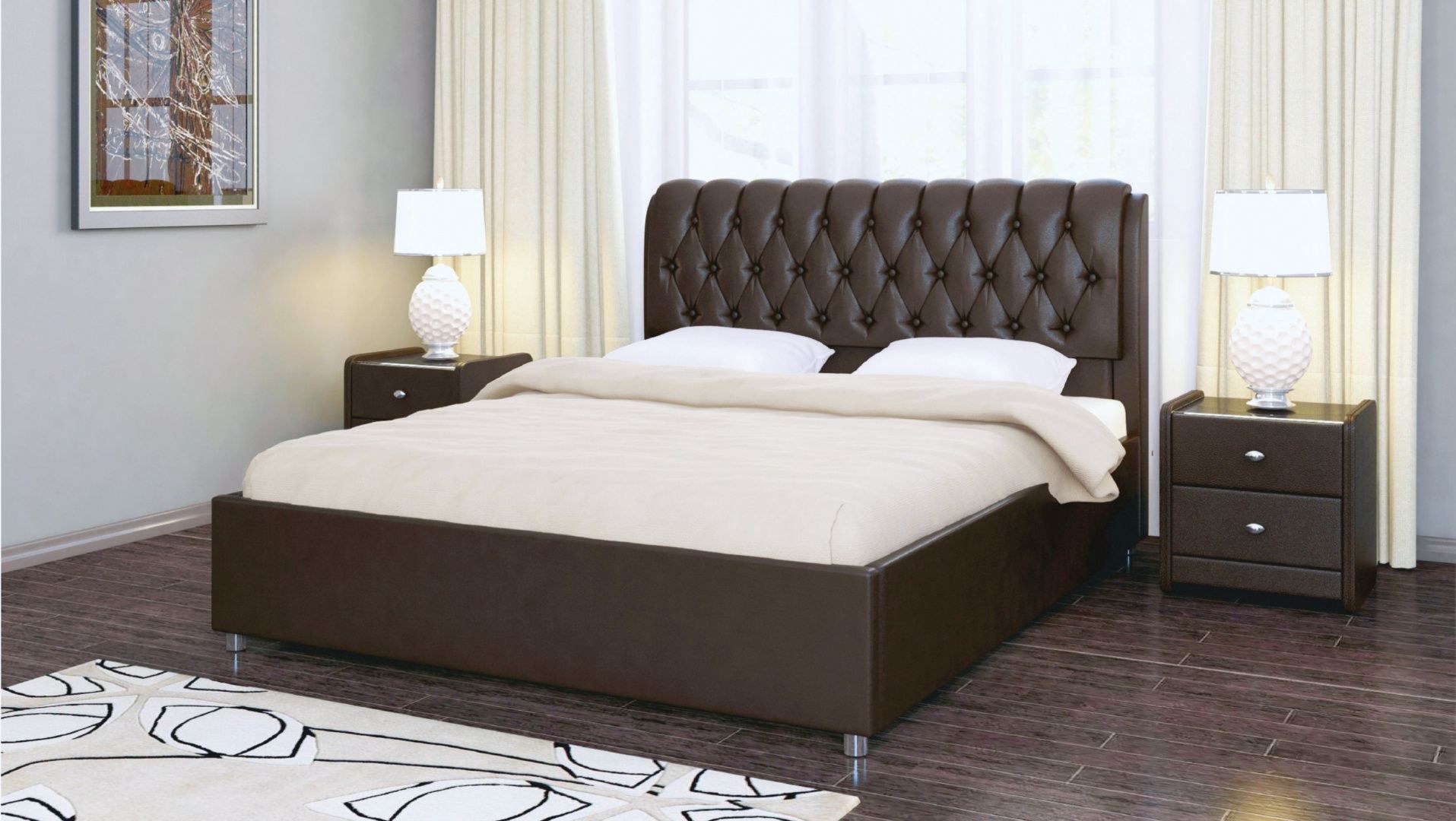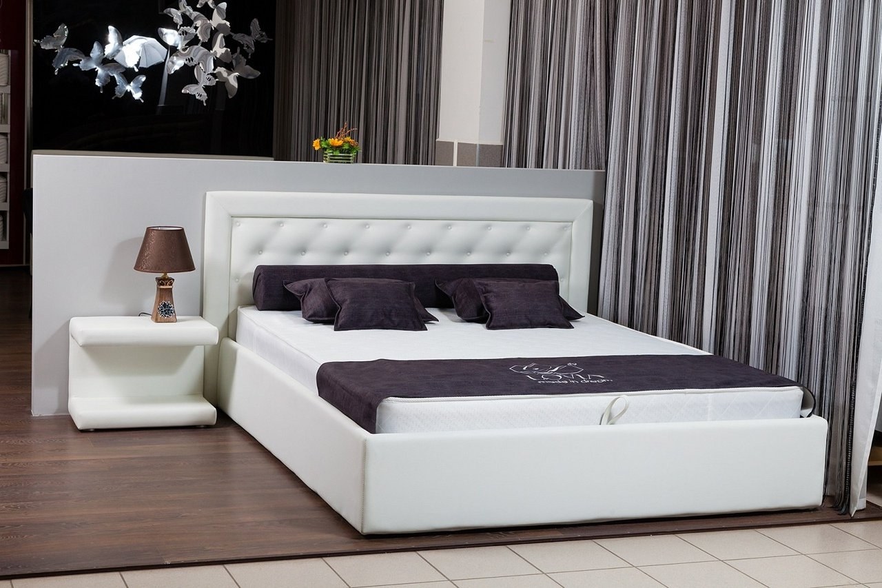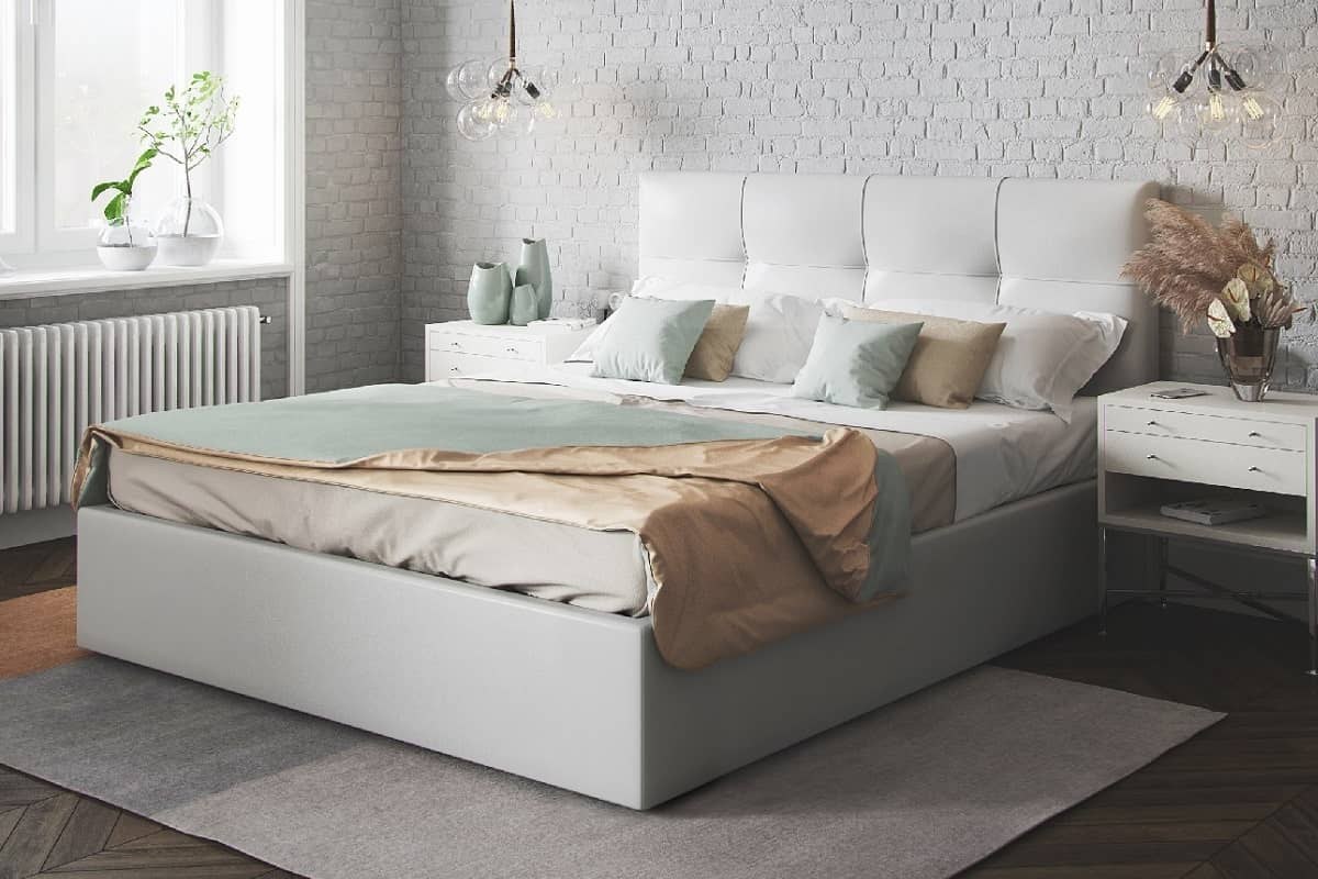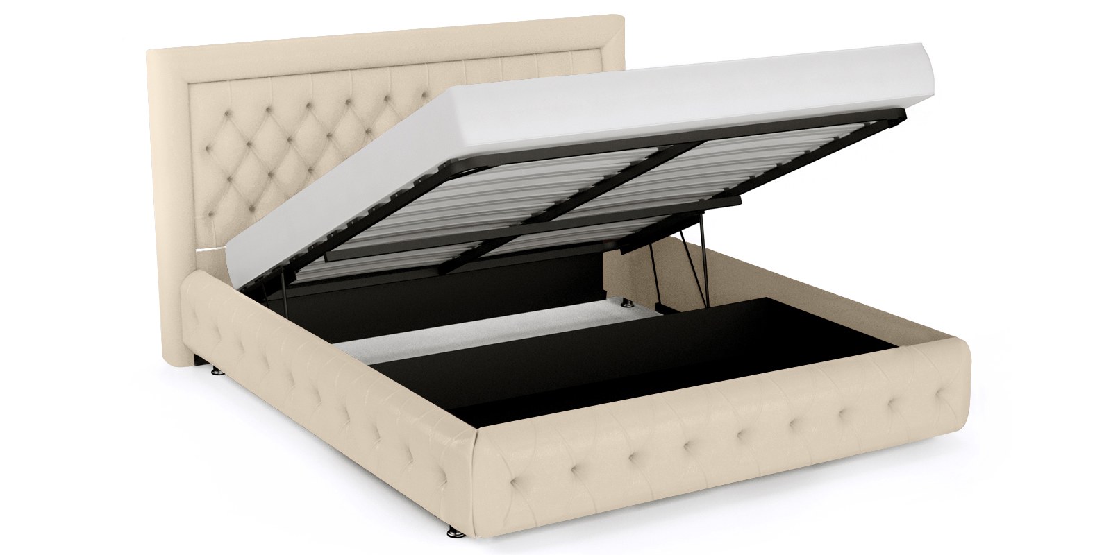 Кровать с подъемным механизмом с изголовьем из экокожи (93 фото)