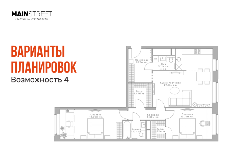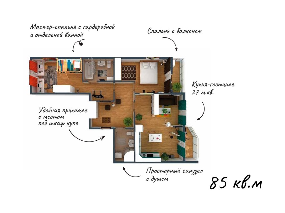 План квартиры с мастер спальней