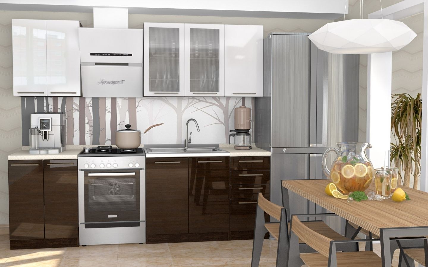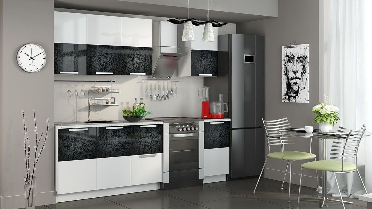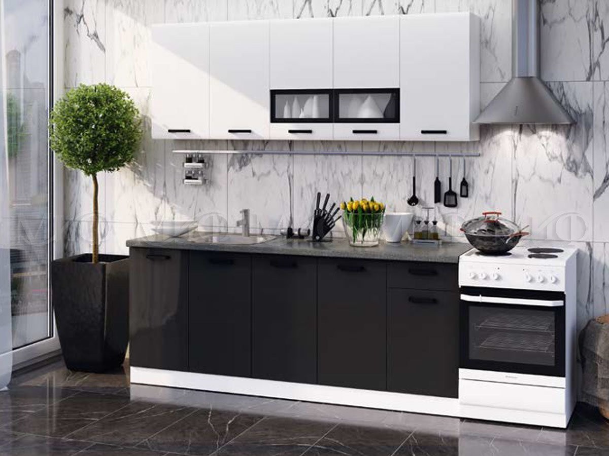 Гарнитур кухонный Натали,белый глянец,черный/базальт r5 2,4м