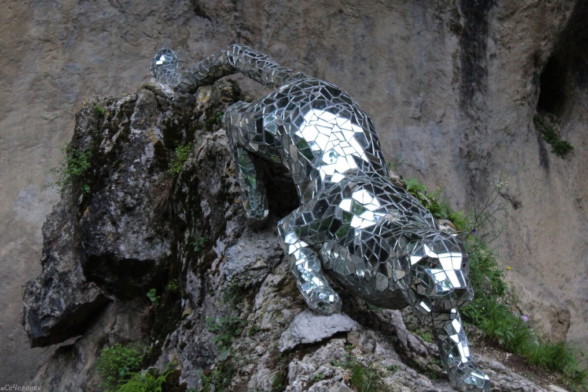 Арт объект зеркальный Барс в Северной Осетии