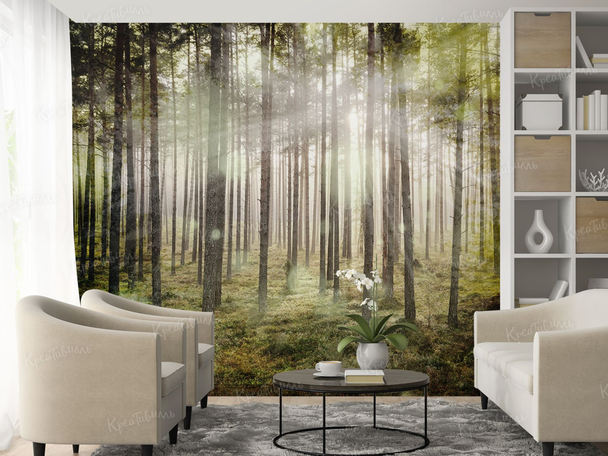Обои сосновый бор в интерьере (91 фото)