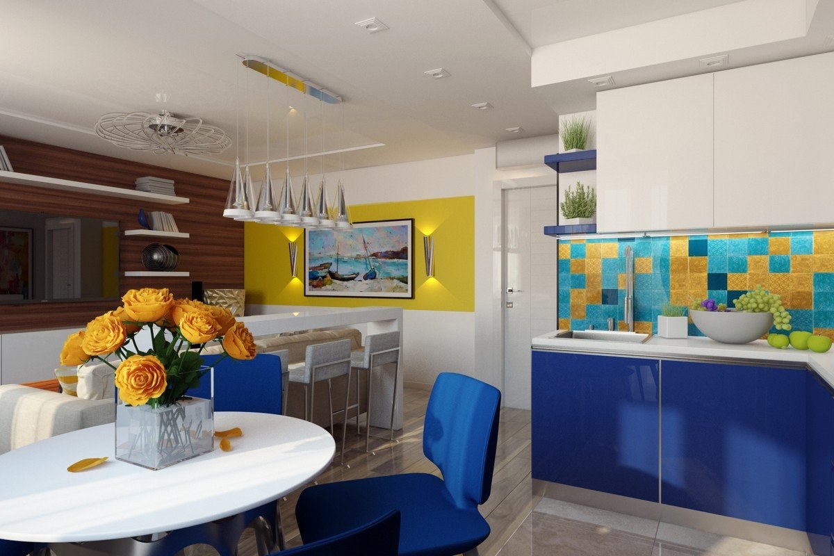 Кухня в сине желтом цвете