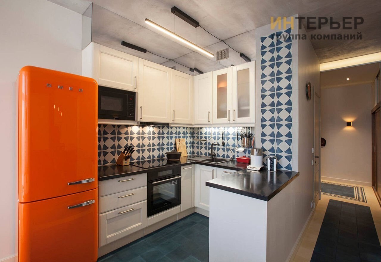 Смег холодильник в интерьере кухни