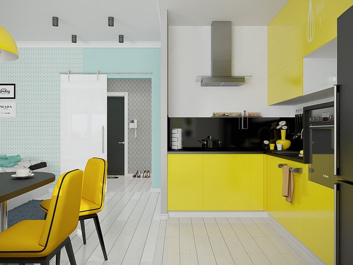 Желтый цвет в интерьере кухни