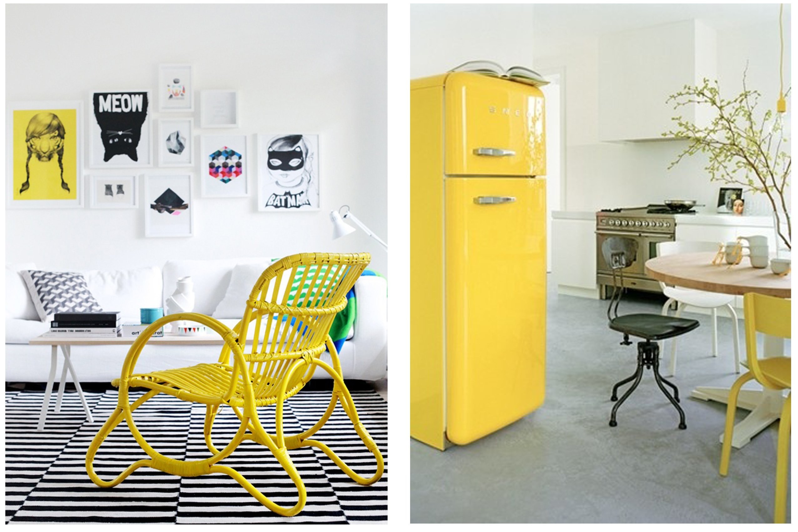 Желтый холодильник в интерьере